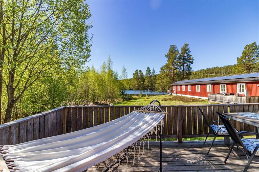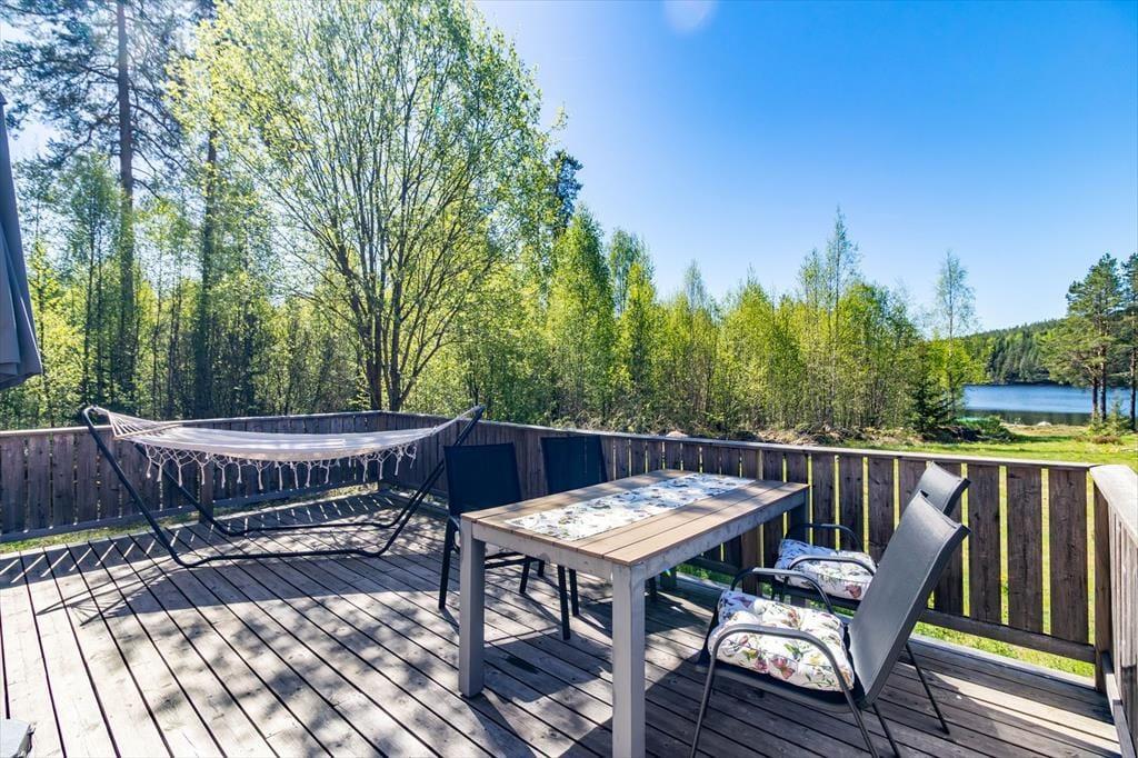 Feriehuset ligger ved den stille nordspids af søen Knon nær Hagfors i Värmland – et sted, hvor du virkelig kan trække vejret dybt og finde ro. Terrassen med hængekøje indbyder til afslapning i den friske luft. Der er ca. 85 m til bredden, så du hurtigt kan komme ned til vandet. På den store grund ligger fire andre feriehuse samt viceværternes hus. Det gør stedet ideelt, hvis I ønsker at holde ferie sammen med venner eller familie, samtidig med at I bevarer jeres privatliv. Til indkøb kan du køre til Ekshärad, ca. 16 km væk. Her finder du ikke kun et supermarked, men også elgparken og Brattfallet-vandfaldet, som især på varme dage er et dejligt udflugtsmål. Ca. 27 km væk ligger Hagfors med et udsigtstårn og et jernbanemuseum. Hvis du kommer om vinteren, kan du udforske skiområderne Torsby (ca. 53 km) og Långberget (ca. 110 km).
