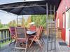Benyt den store træterrasse til at nyde roen og det åbne landskab. Her kan I sidde under pavillonen, tænde op i grillen eller bare nyde solen i de behagelige havemøbler. Den rummelige grund, som I deler med det nærliggende feriehus, giver masser af plads til at slappe af eller læse en god bog i det fri.