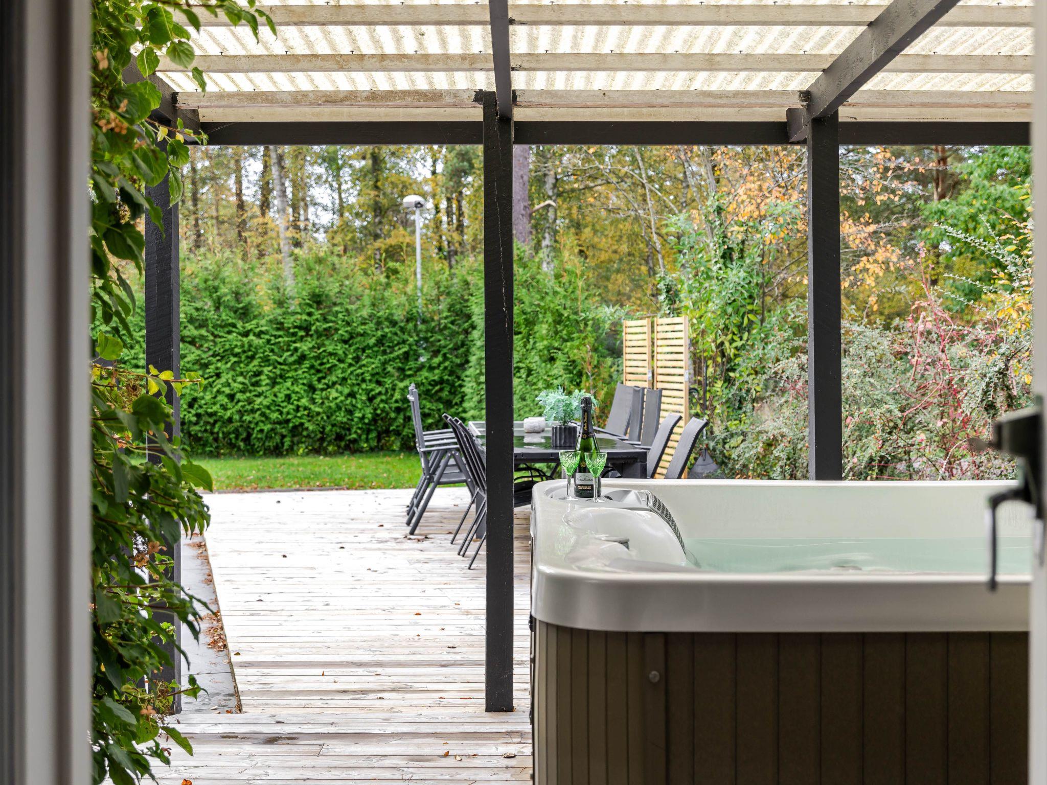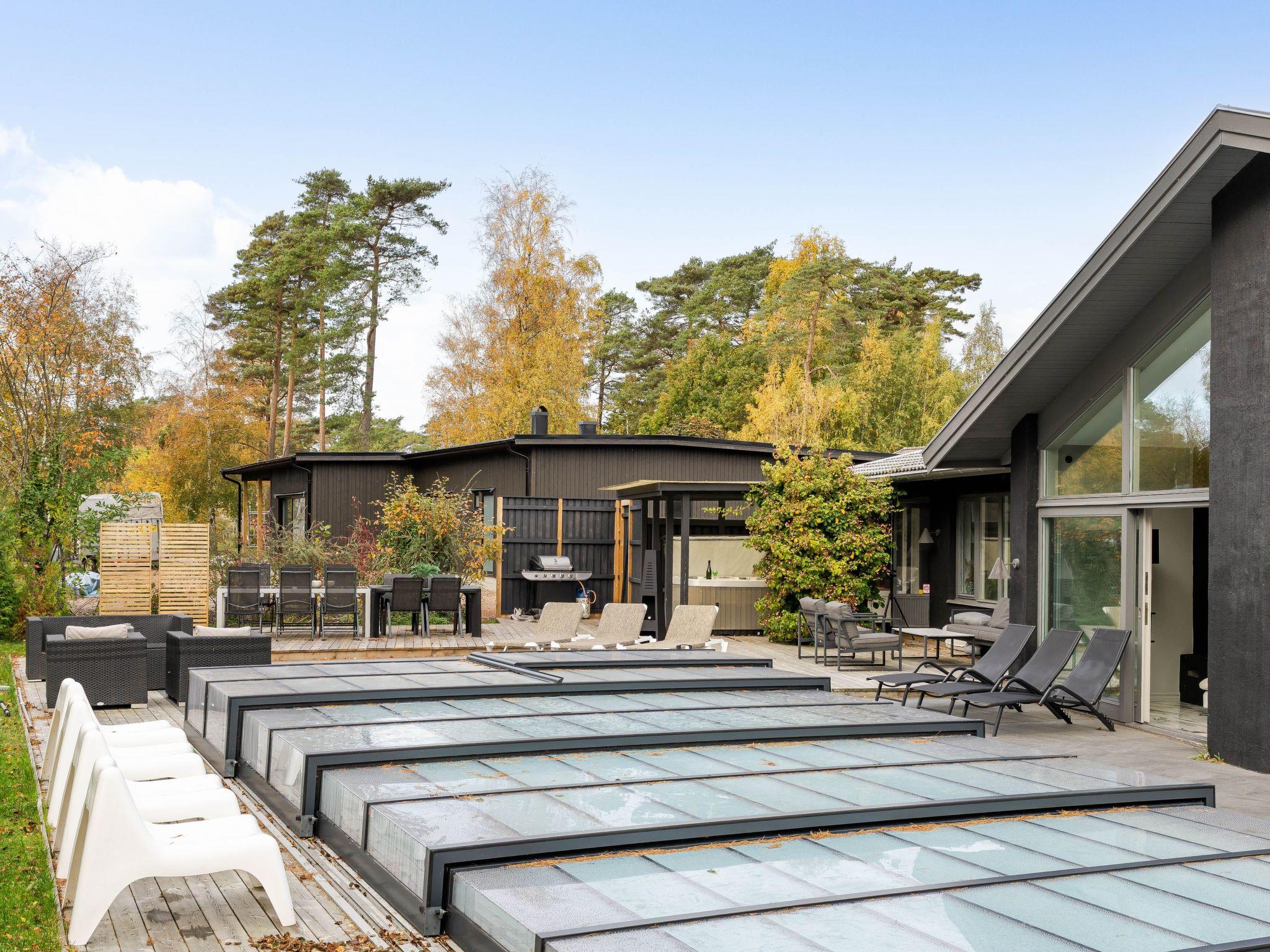 Large, modern, beautiful villa "Frösakull Paradiset". 10 km from the centre of Halmstad, 101 km from the centre of Helsingborg, 800 m from the sea. Private: natural state property, beautiful, well-kept terraced garden flowers and trees, swimming pool angular, heated (6 x 4 m, seasonal availability: 30.May. - 30.Sep.). Hot tub, parking (for 2 cars) at the house. Shop 1 km, grocery 1 km, supermarket 1 km, shopping centre 5 km, restaurant 1 km, bar 1 km, bakery 1 km, bus stop 100 m, railway station "Halmstad Central Station" 10 km, ferry "Helsingborg" 101 km. Golf course (36 hole) 6 km. Nearby attractions: Tylösand 1 km, Ringenäs Golf Club 500 m, Grötvik 1.4 km, Halmstad City 8 km, Hallarna Shopping Center 18 km.
