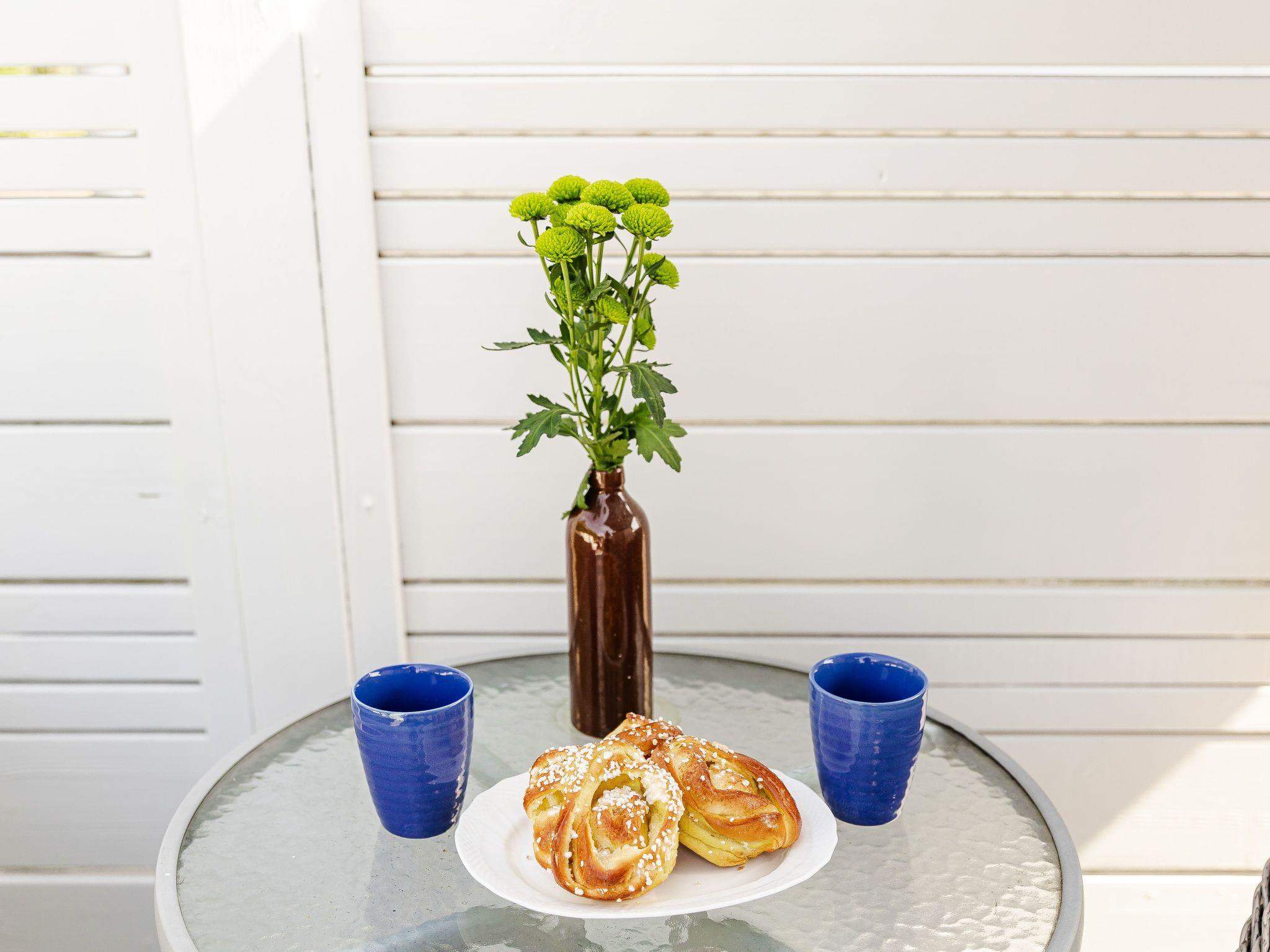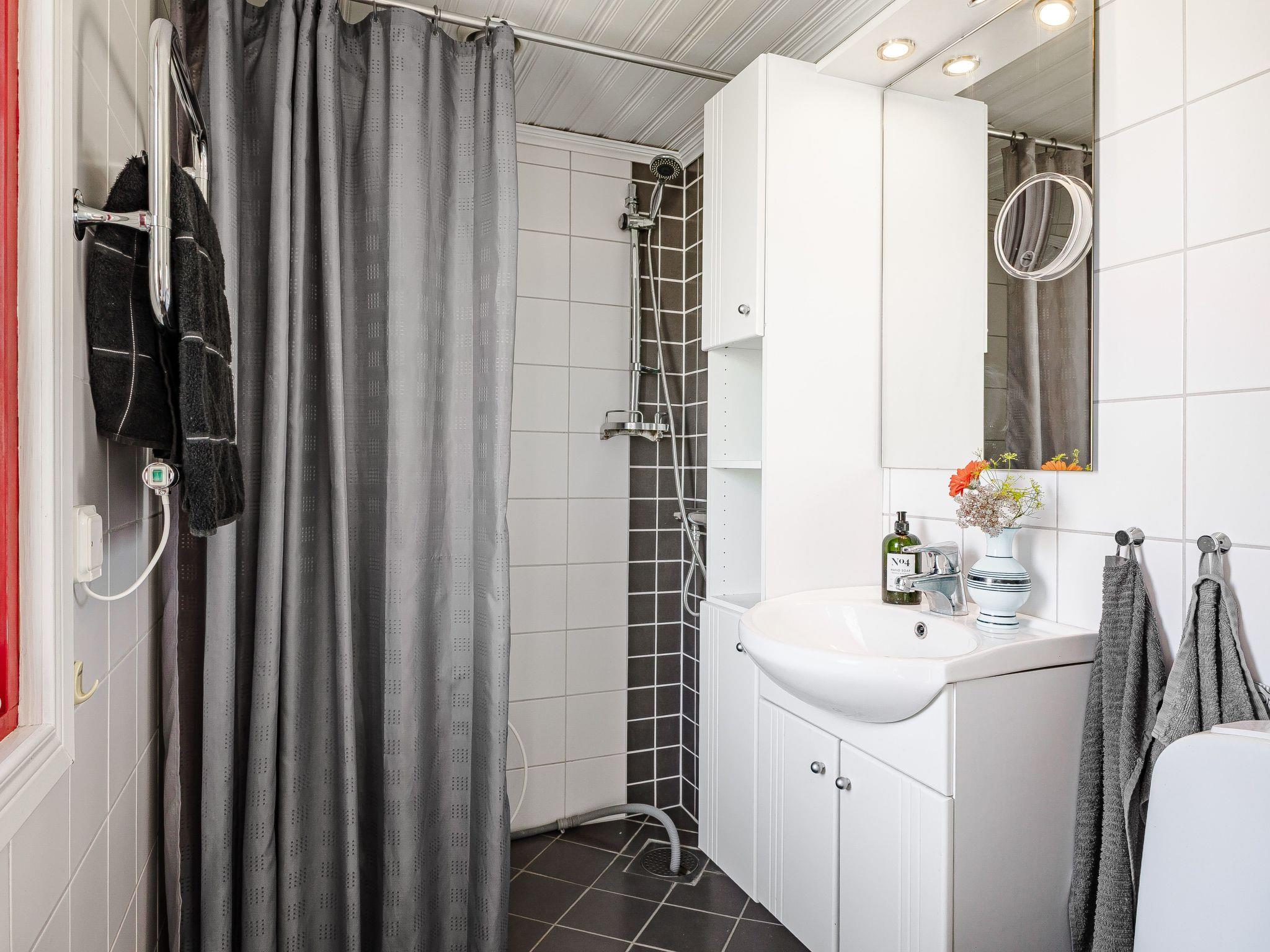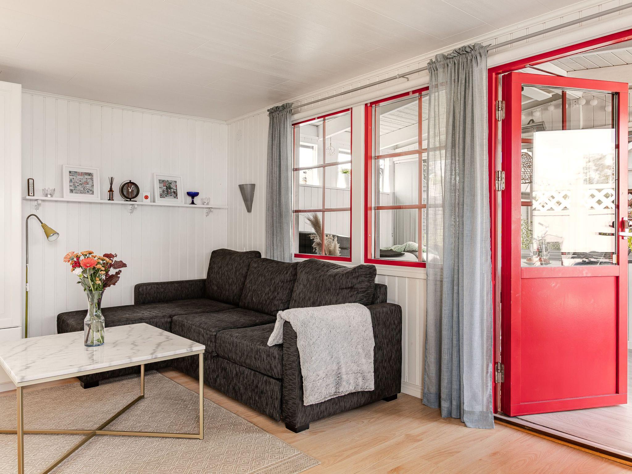 "Johannistorp", 2-room house 30 m2. Living/sleeping room with 1 double sofabed, dining table and TV. Exit to the garden, to the terrace. Kitchen (dishwasher, 4 induction hot plates, toaster, kettle, microwave, electric coffee machine) with dining table. Exit to the garden, to the terrace. Shower/WC. Heating, electric heating, air-conditioning. Upper floor: (steep stair), 1 room with sloping ceilings with 4 beds (90 cm, length 200 cm).
