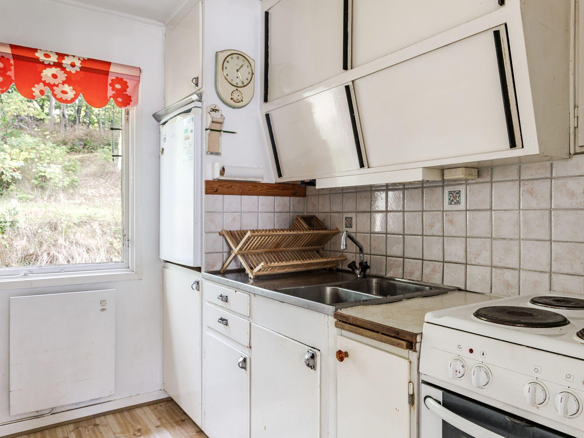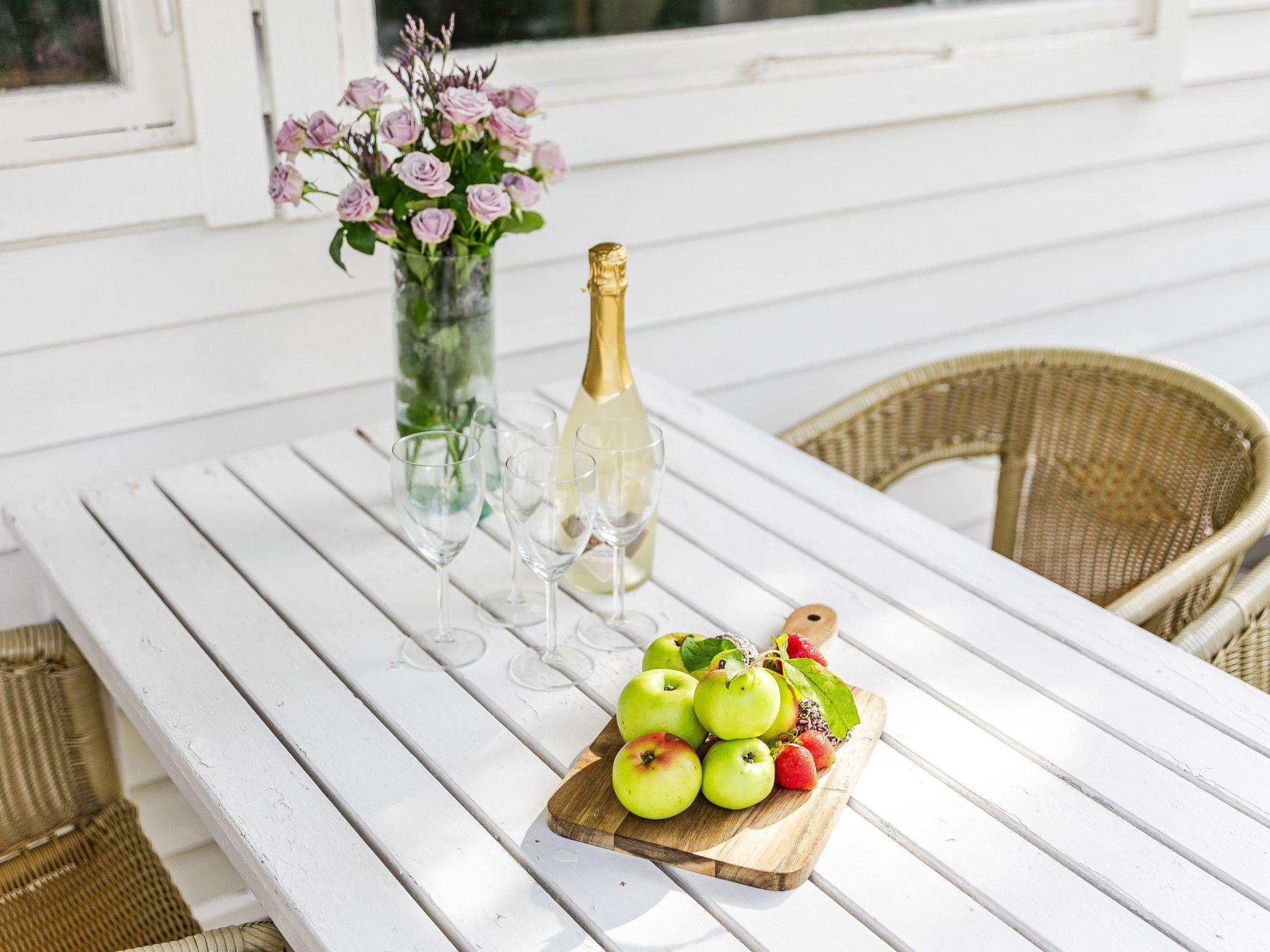 "Frösakull", 5-room house 80 m2. Open living/dining room with dining table and TV. Exit to the garden, to the veranda. Small dining room. 1 room with 2 beds (90 cm). 1 room with 2 beds (90 cm). 1 room with 2 beds (90 cm). Kitchen (oven, dishwasher, 4 induction hot plates, toaster, kettle, microwave, freezer, electric coffee machine) with dining table. Shower/WC. Comfortable furnishings in the country house style. Balcony furniture, barbecue. Please note: non-smoking house.