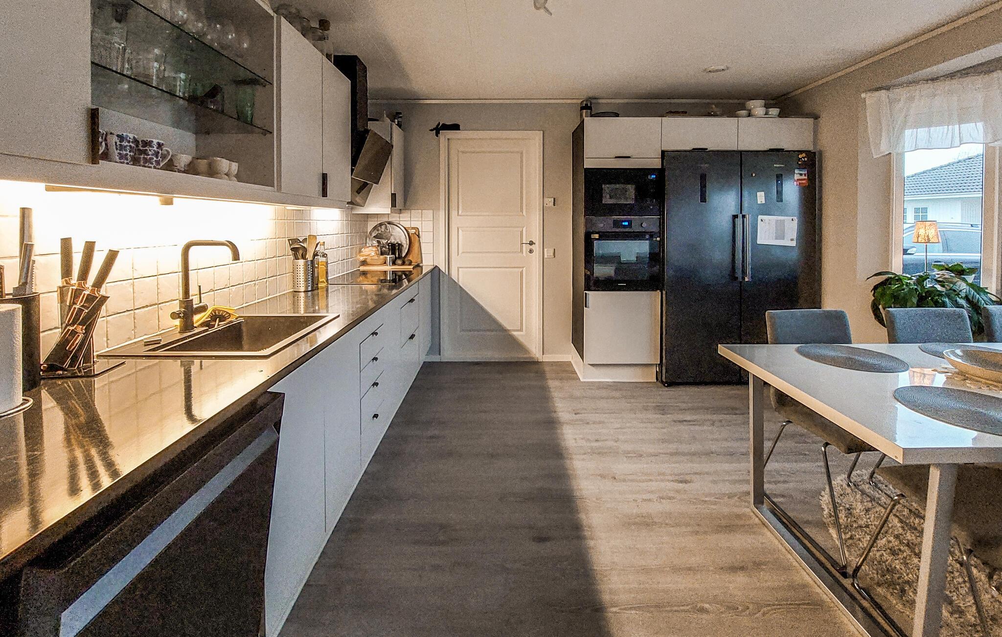Huset er fuldt udstyret og byder på en smagfuld indretning, hvor I virkelig kan slappe af og føle jer hjemme fra dag ét. De forskellige rum er kærligt udsmykket, og indvendigt emmer det af en behagelig og nærmest hjemlig atmosfære. Nyd godt af de gode faciliteter og tag jer god tid med madlavningen i køkkenet, mens andre hygger sig med kortspil eller en god bog i den store sofa. Om aftenen står den på filmhygge med gode snacks, og på de varme sommerdage lokker den solrige terrasse jer uden for, hvor I kan slænge jer i havemøblerne og tænde op i grillen på de magiske sommeraftener.