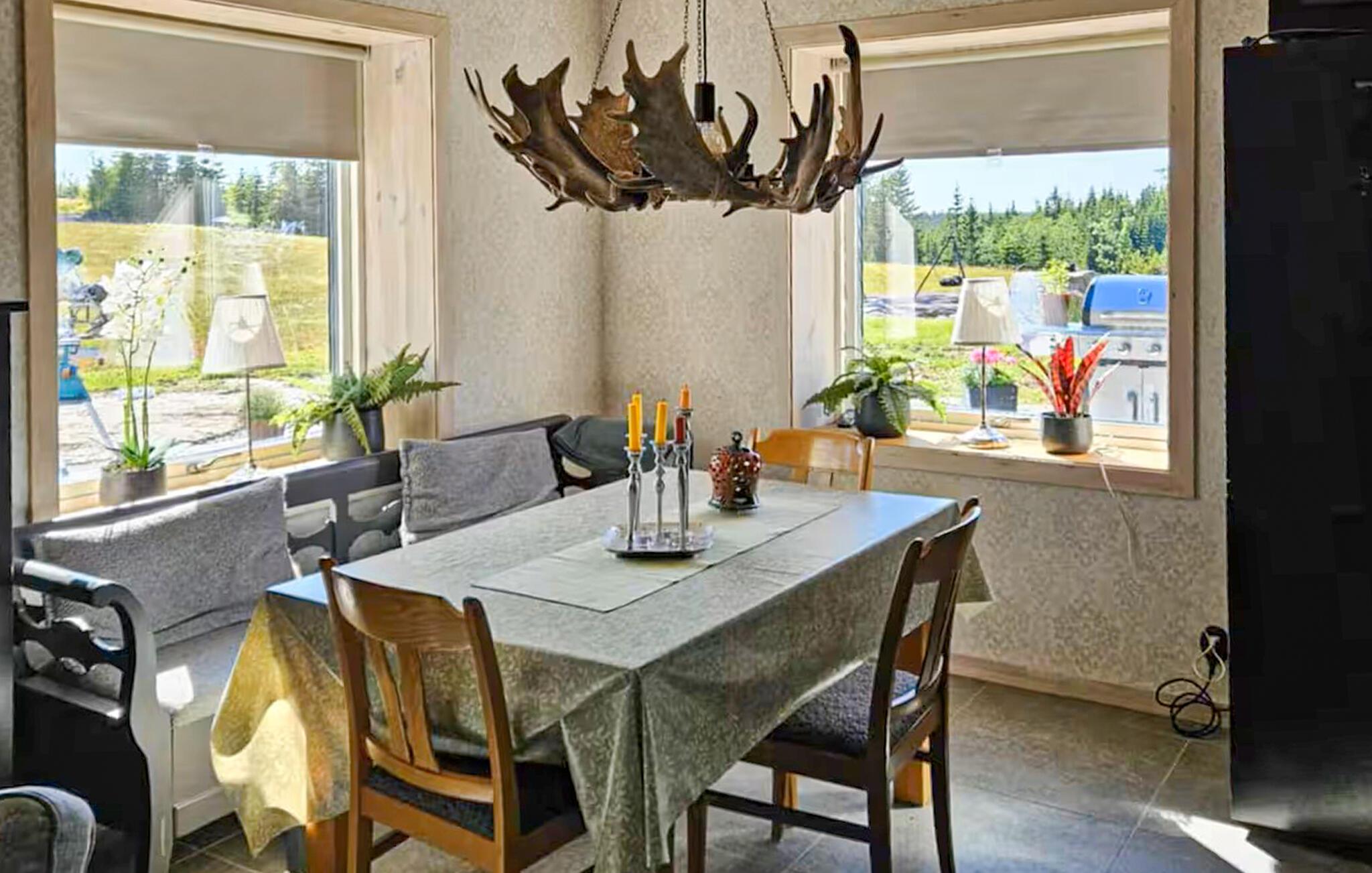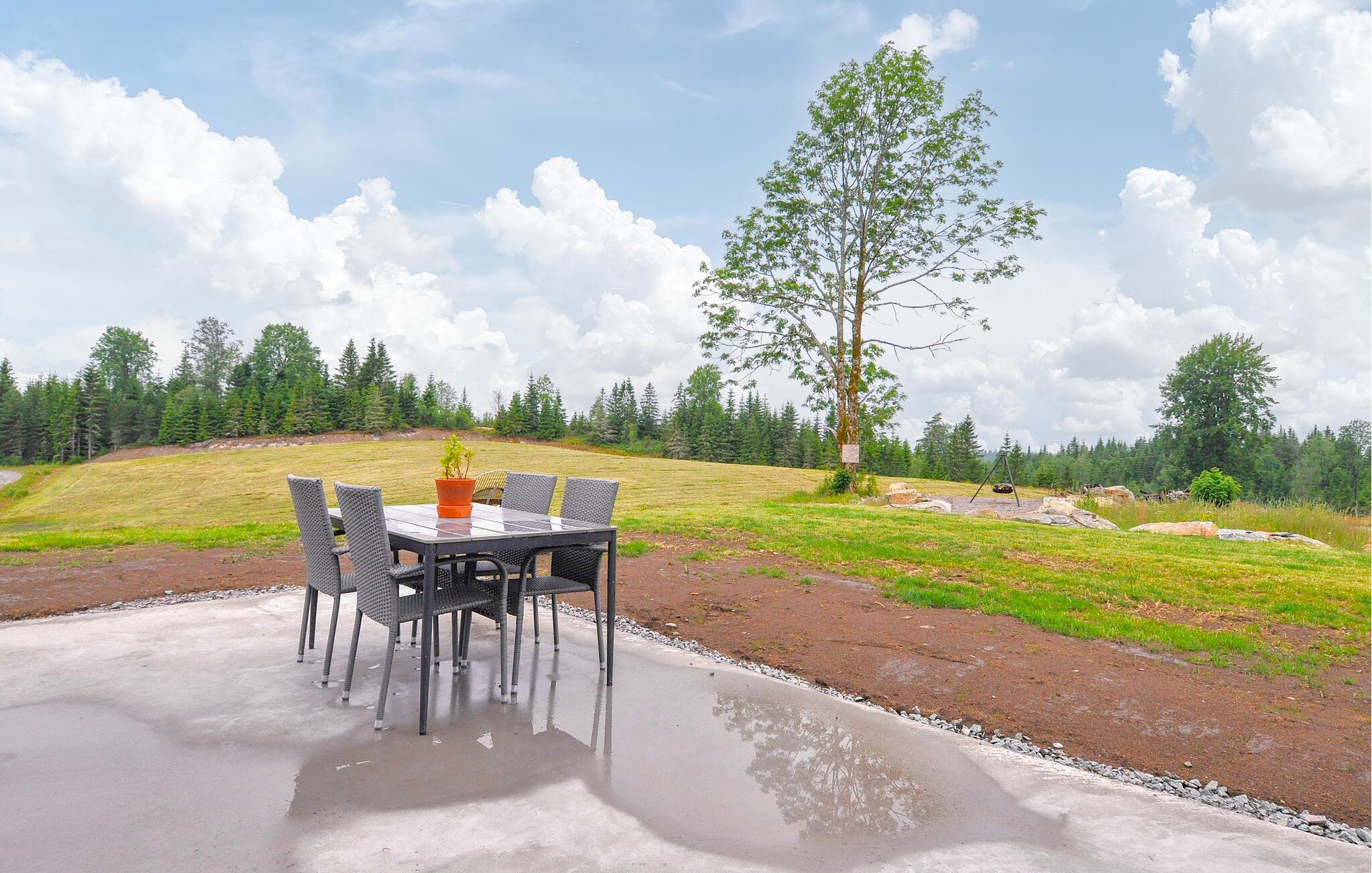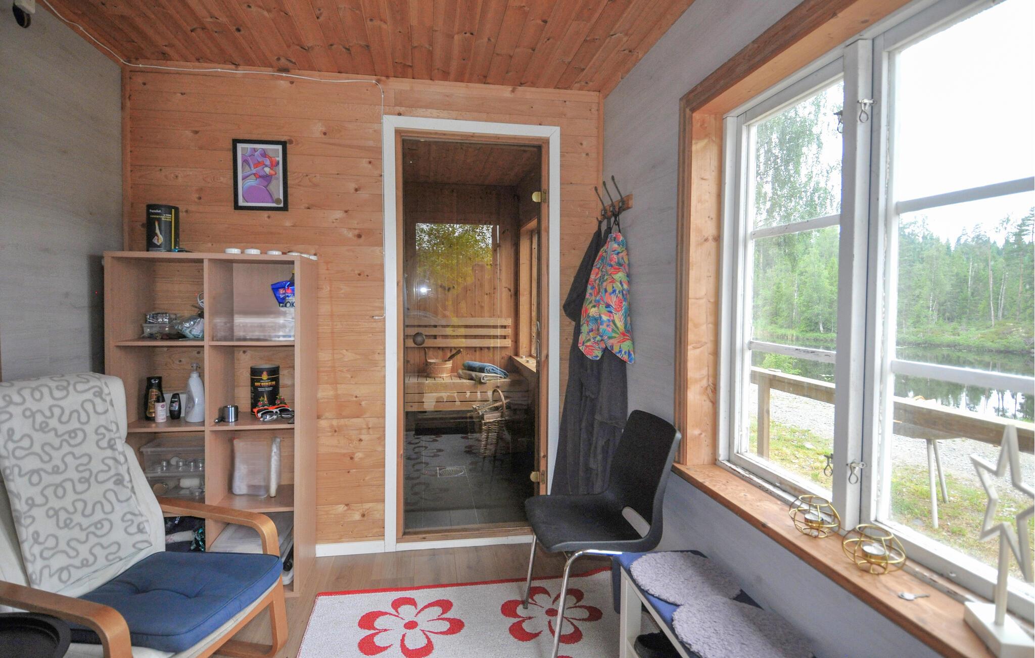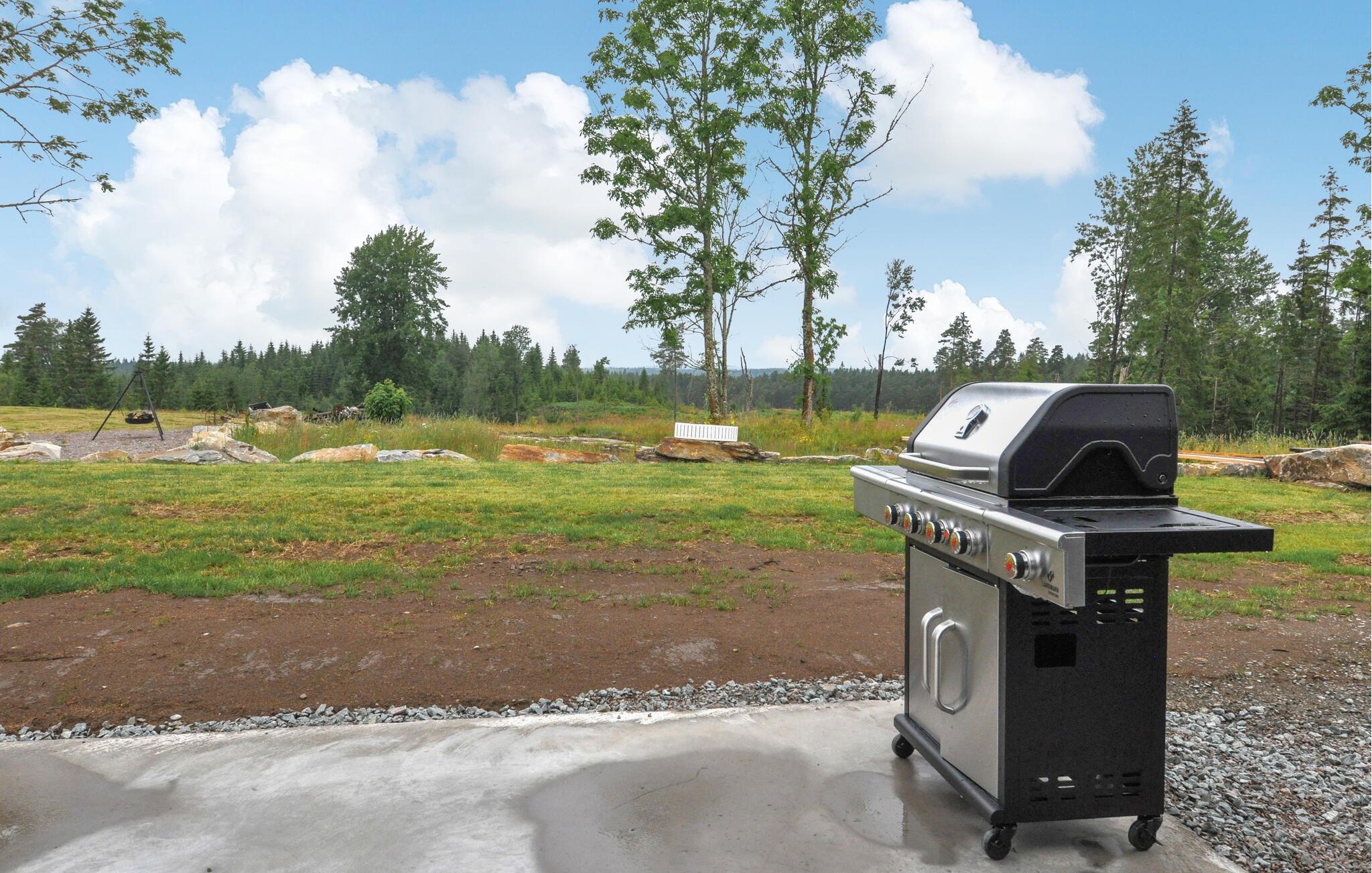 Den store terrasse og grillpladsen lægger op til at tilbringe afslappende timer udendørs. Saml jer her til morgenmad eller afslut aftenen under stjernehimlen. En brændefyret sauna og en robåd venter jer ved søen, kun få minutter fra huset, så I kan udforske søen.