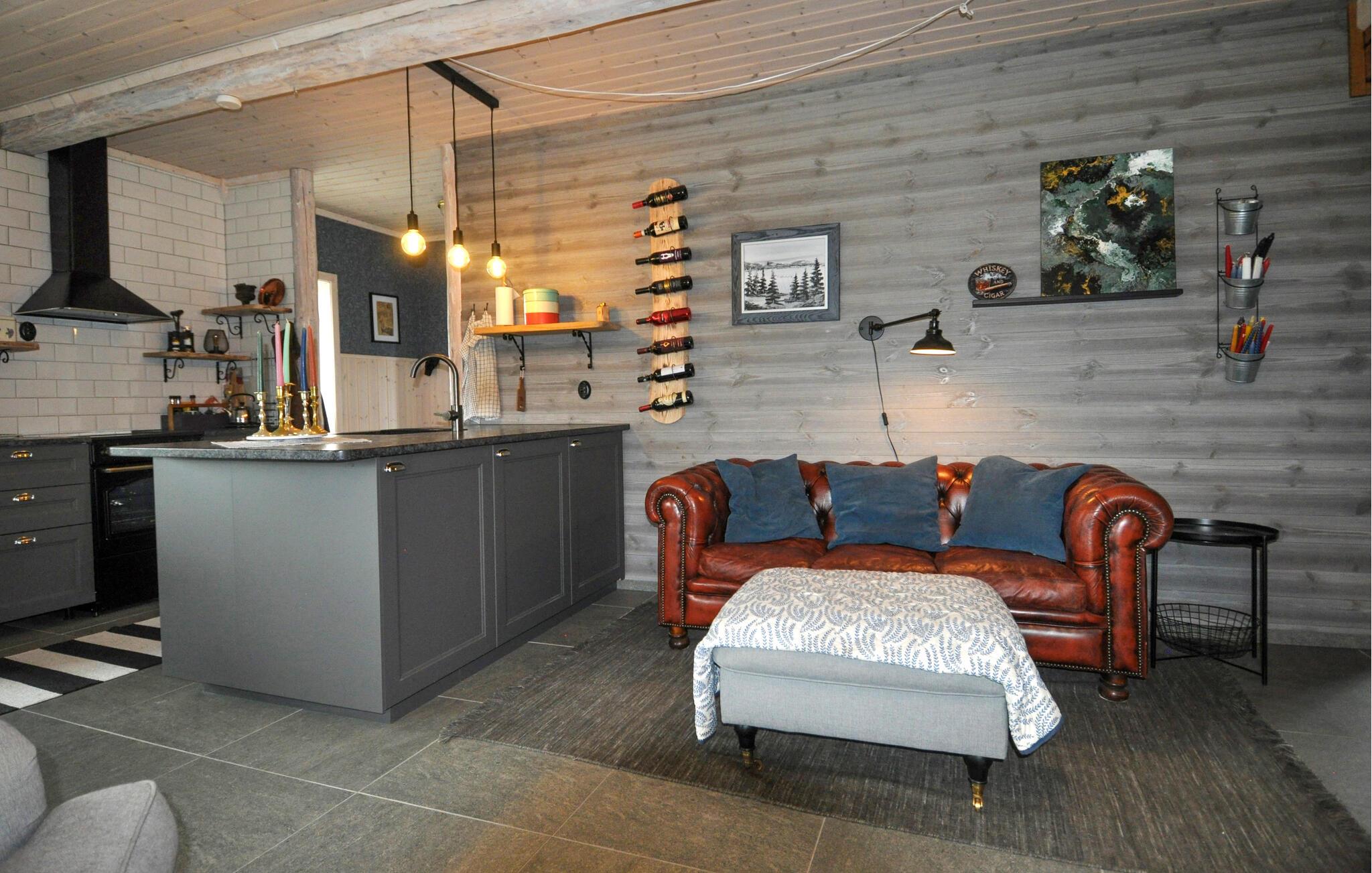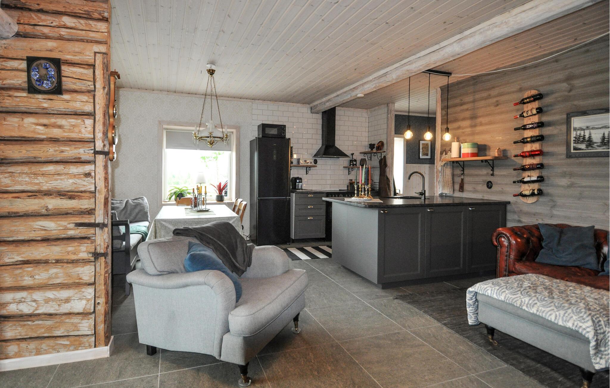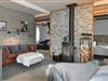 I dette hyggelige feriehus finder I hurtigt ro og kan genoplade batterierne. Den lyse stue med glasvægge tilbyder en fantastisk udsigt over det vidtstrakte landskab. Varmt træ, naturstenslook og stilfulde sofaer skaber en afslappet og beroligende atmosfære. Fordyb jer i jeres ferielæsning, lav mad sammen i det moderne køkken eller Læn jer tilbage i den hyggelige varme ved pejsen med et glas vin.