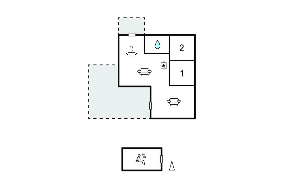 Soveværelse (nr. 2) - 2 Sovepladser. (Sofa, madras eller lignende).