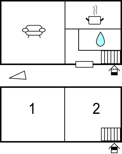 Soveværelse (nr. 1) - 1 Soveplads. (Enkeltseng(e)). 2 Sovepladser. (Dobbeltseng(e)).