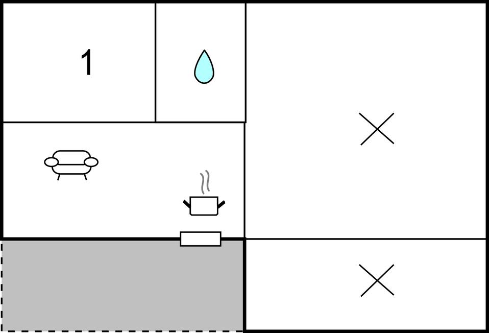 Opholdsstue/køkken - 1 Soveplads. (Sofa, madras eller lignende).