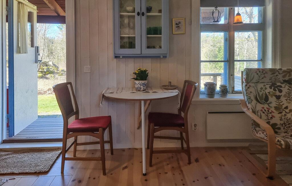 Her er et velindrettet soveværelse med en skøn dobbeltseng, et enkelt køkken i stuen og en sovesofa. Rummeligt badeværelse med brusebad. Det tager ikke mange minutter at gå ned til Älgtjärn, hvor der er mange gedder. I området omkring huset er der mange bær, svampe, og I kan være heldige at se elge.