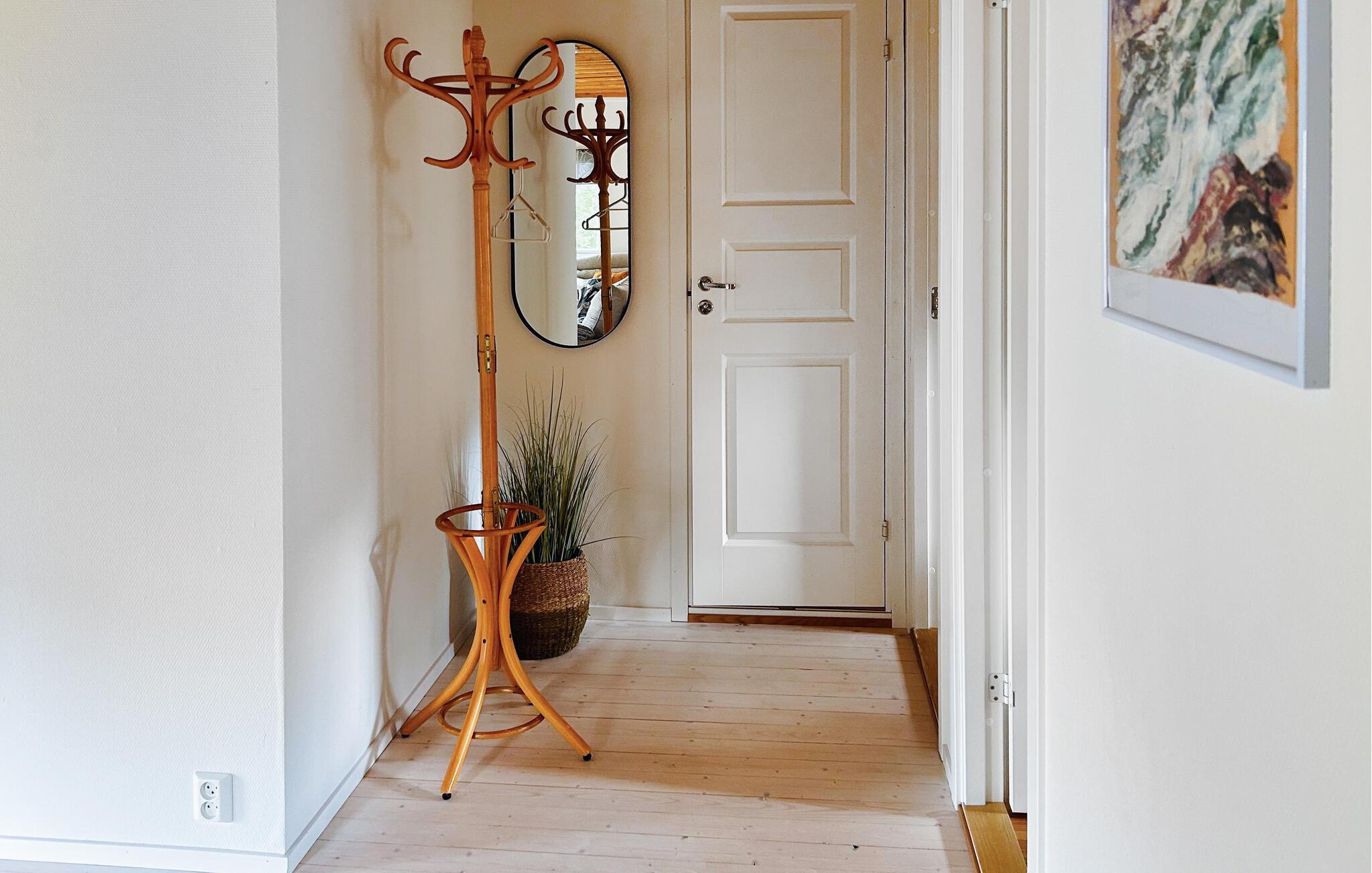 En rolig beliggenhed med fredelige omgivelser i feriehusbebyggelse og med en stor grund til alle former for udendørs aktiviteter. Der er tre terrasser ved huset, hvoraf den ene er under tag og har åben pejs. Det betyder, at I kan tilbringe timer udendørs under Sveriges lange sommeraftener. 4 soveværelser med hver 2 senge, det ene soveværelse er gået ind udefra, det såkaldte anneks og er meget velegnet til store børn eller teenagere. Skønt spisekøkken, der lægger op til afslapning med den åbne pejs og køkkenafdeling.
