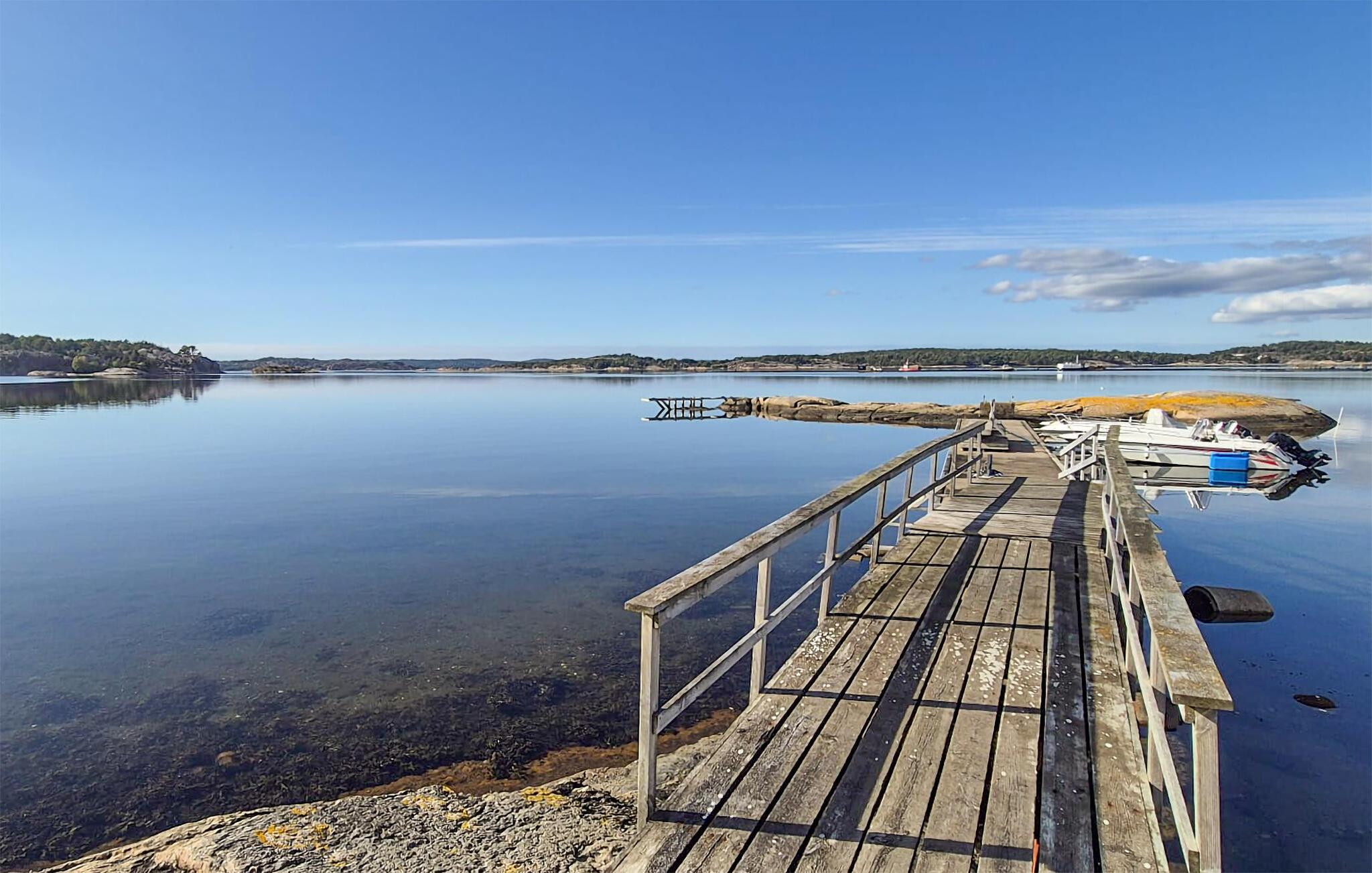 100 meter fra den lille sandstrand, 300 meter fra badebroerne. I kan fiske i Skåpesundbron (havørred) eller fra klipperne. På Mjörn er der også Sundsby Säteri med café, legeplads og vandrestier. Tjörn har også en smuk fiskerby med et akvarelmuseum og restauranter. Til jeres daglige behov kan I handle i Almösund, men flere valgmuligheder venter jer i indkøbscentret i Stenungsund.