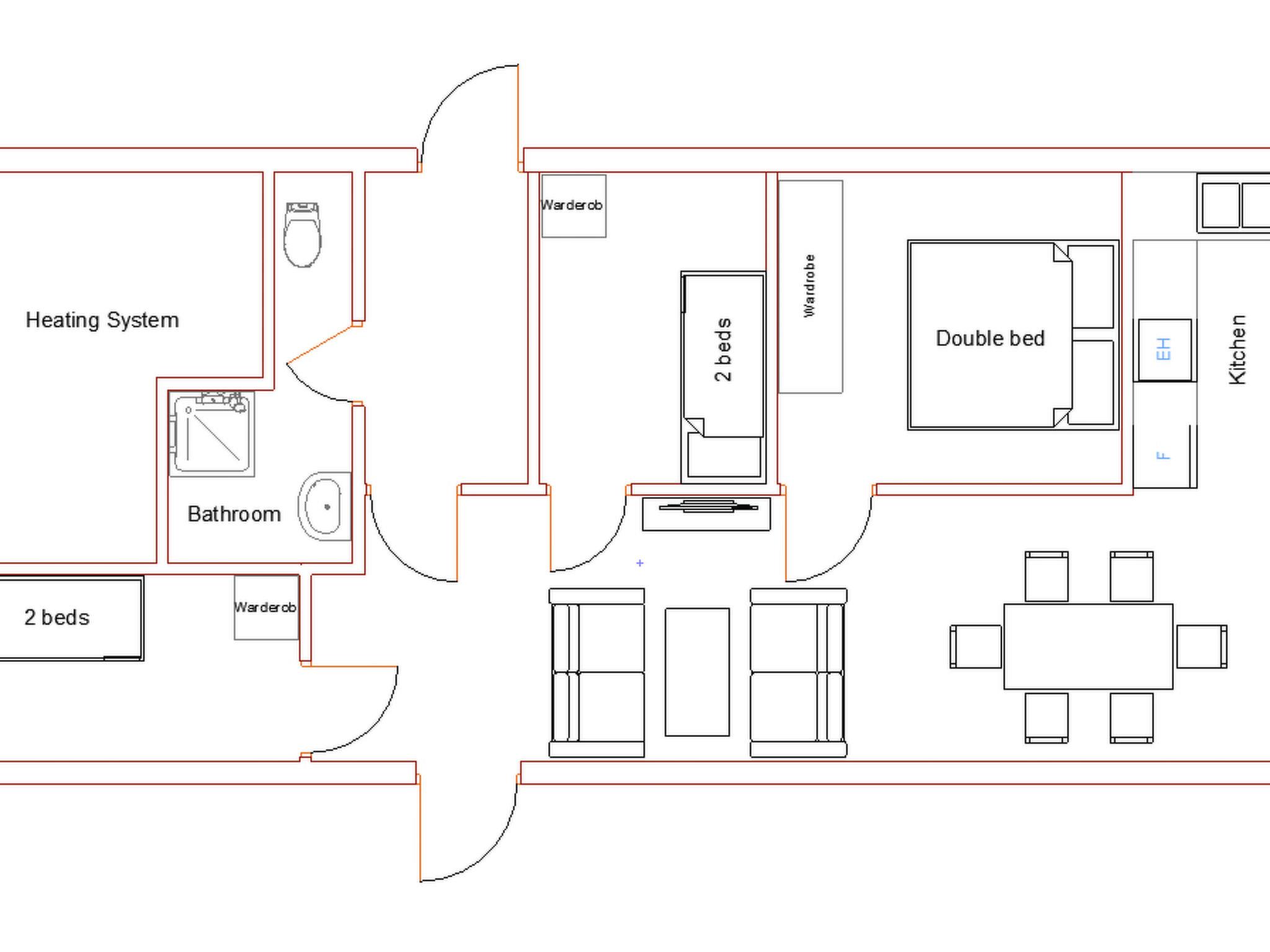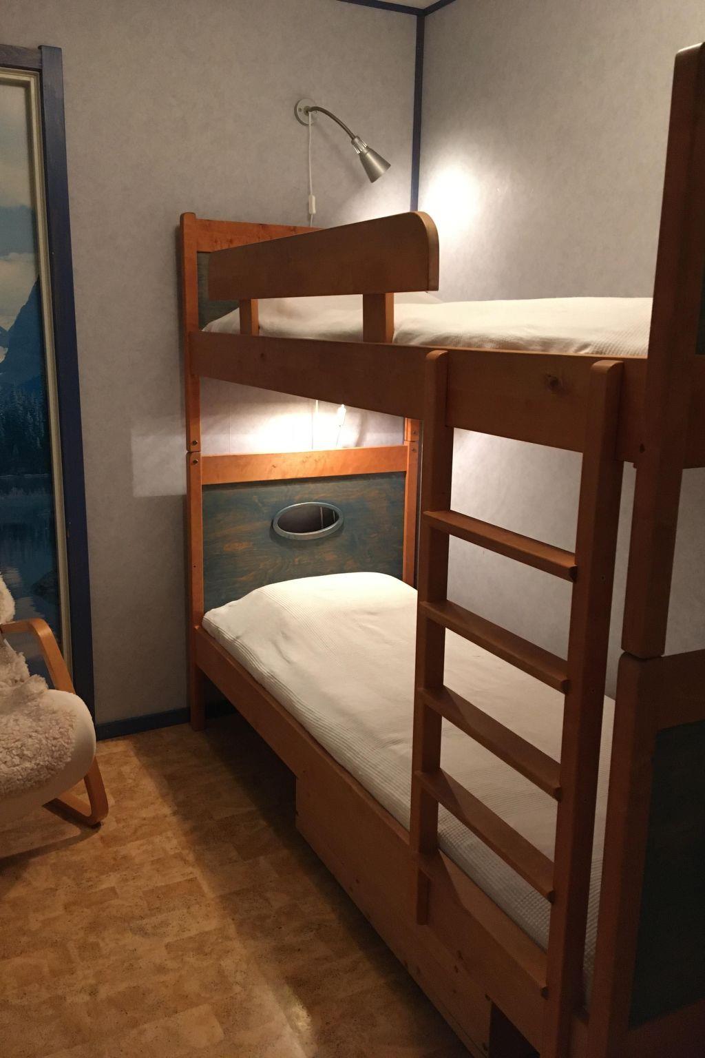 The house built in an old style provides around 70m² of living space for up to six people. The bunk beds in two of the three bedrooms are of course more suitable for children. The parents’ bedroom has a double bed and is a little more spacious than the other two bedrooms. There is a combined living and dining room with a sofa, dining table and fully-equipped kitchen, with an electric stove, fridge, extractor fan, freezer (200l), microwave and coffee machine. A vacuum cleaner, highchair, TV, radio, CD player and children’s bed are also provided. The bathroom has a shower and WC. The house has a washing machine, is insulated and has central heating/under-floor heating. Pets are not allowed. The owner lives on site.