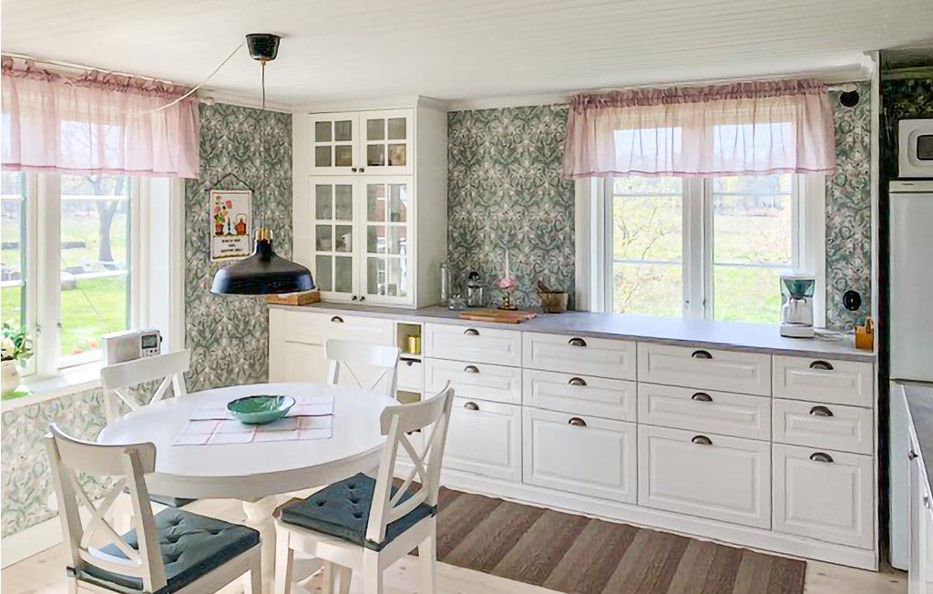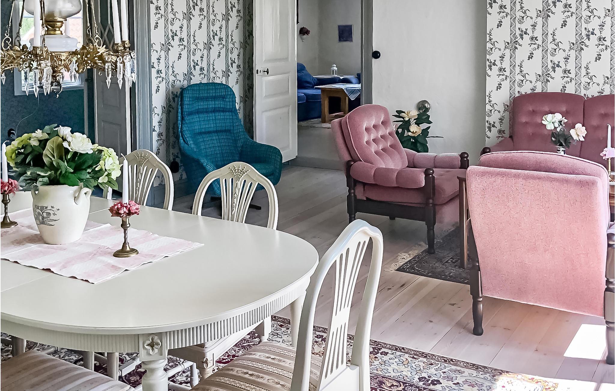 Bare en kilometer væk ligger Borgholm med et større udvalg af butikker og restaurant, men også anden service. Huset er ekstremt smukt med privatliv fra vejen. Her finder du en rigtig stor og dejlig stue med udgang til den store veranda på bagsiden. Der er også en anden stue, badeværelse, to soveværelser og et køkken. Generøs have både bag og foran og plads til mange biler i gården mellem stalden og grunden.