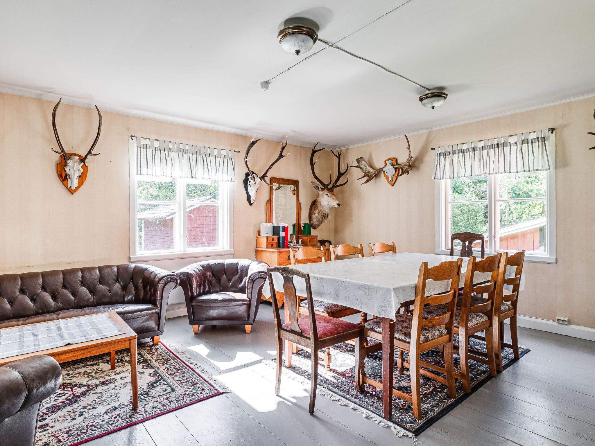 "Mjöshult", 4-room house 90 m2 on 2 levels. Bright: living/dining room with open-hearth fireplace, dining table, satellite TV and DVD. 1 room with 2 beds. Exit to the garden. Kitchen (oven, dishwasher, 4 ceramic glass hob hotplates, toaster, kettle, microwave, freezer, electric coffee machine) with dining table. Shower, sep. WC, double hand-basin. Electric heating. Upper floor: 1 room with sloping ceilings with 1 double bed. 1 room with sloping ceilings with 1 bed and 1 double bed. Entrance hall with sloping ceilings with 1 bed. Wooden floors. Facilities: washing machine. Internet (WiFi, free). Please note: one double bedroom is outside the apartment. Non-smoking house. Maximum 2 pets/ dogs allowed. No internal connecting door between the separated properties. Freezer approx. 60 l. When there are less than the maximum number of guests staying at the property, the annex will not be available for use.
