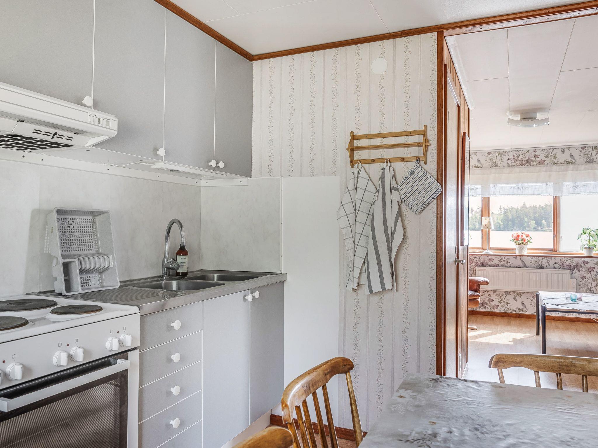 "Sjöatorp Skogsstugan", 3-room house 57 m2. Practical and beautiful furnishings: living room with open-hearth fireplace and satellite TV. Exit to the veranda. 1 open room with 2 beds. 1 room with 1 x 2 bunk beds. Sleeping alcove with shower. Open kitchen (4 hot plates, oven, toaster, kettle, microwave, freezer, electric coffee machine) with dining table. Shower, sep. WC. Electric heating. Panoramic view. Please note: non-smoking house. Smoke alarm. No internal connecting door between the separated properties. Freezer approx. 100 l. Shower in the outbuilding.