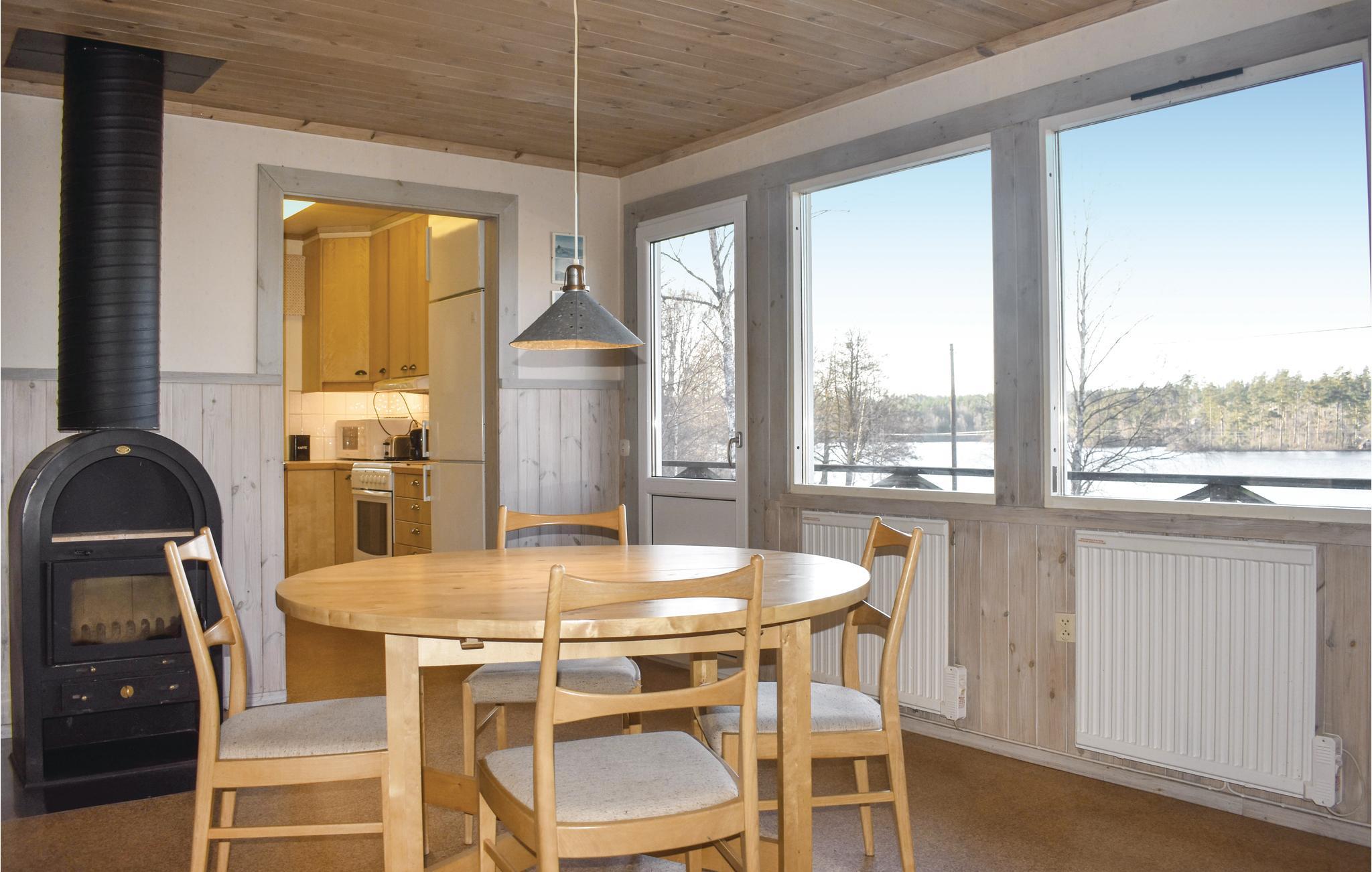 Velkommen til dette pæne og højt beliggende hus med en smuk udsigt fra stuen over den nærliggende Bredasjön (50 m). Som gæster i dette hus har I to altaner, hvoraf den ene er overdækket. Der er søudsigt. Bag huset findes bær- og svamperige skovarealer. Ca. 300 m fra huset ligger et børnevenligt sted til at bade med udspringstårn og broer. Til huset hører en brændefyret sauna, som I deler med S03152, der ligger ca. 20 m fra jeres feriehus. 1 ekstra robåd findes i en anden sø, fælles med S0152. Der er mange udflugtsmål i nærheden, fx Eriksberg og Glasriket. Karlskrona 30 km. Mellem huset og søen er der en let trafikeret landevej.