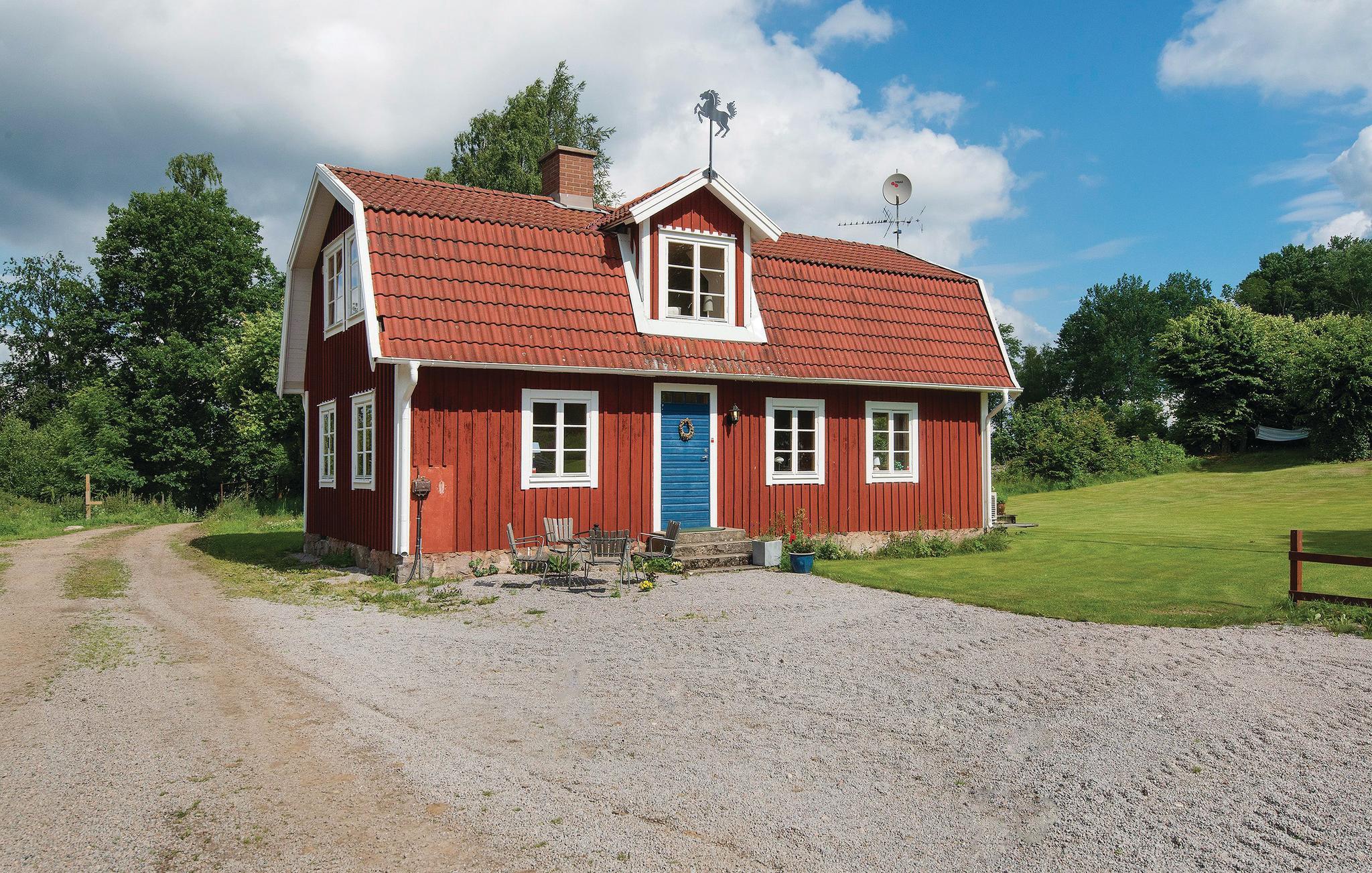 Der er børnevenlige badeforhold i Husgölsstacken, hvor I også har adgang til egen båd. I kan fiske i tre andre søer, hvor I deler båd med de andre huse. Mange attraktioner i området byder på gode destinationer for både børn og voksne. Husene er handicapvenlige. Vildsvinejagt er muligt efter samråd med ejeren. Glasriket 35 km. Kano er tilgængelig, deles med to andre huse.