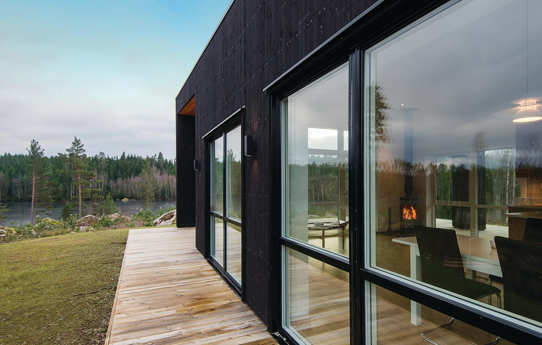 Moderne, lyst, luftigt og miljøvenligt arkitekttegnet moderne feriehus i smuk natur med mange søer og gode vandrestier omkring Holmsjö.