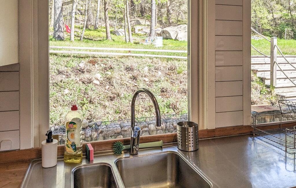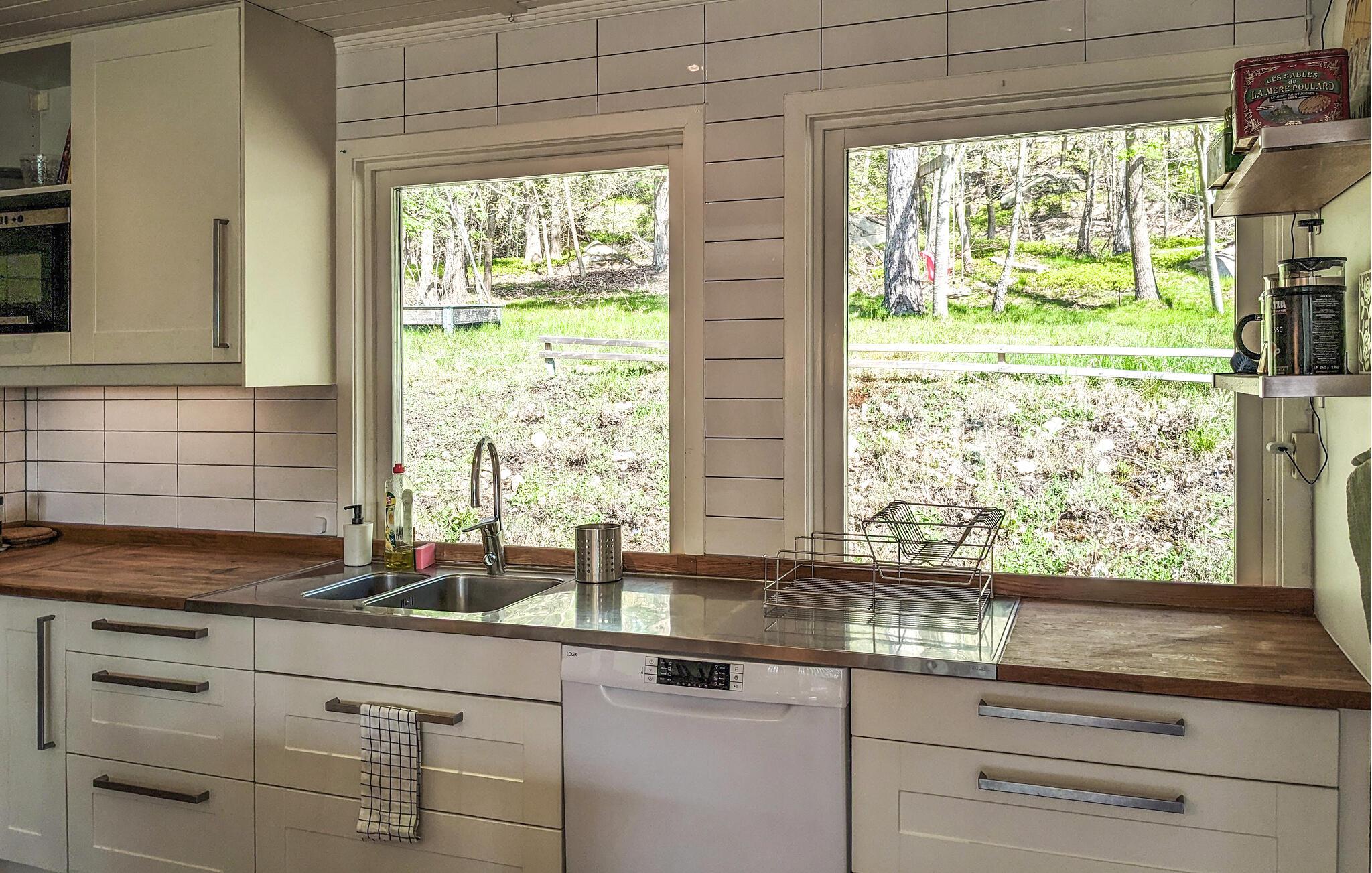 Store vinduer i dette indbydende feriehus tilbyder en smuk udsigt over det omkringliggende landskab og giver også det rummelige interiør masser af naturskønt lys. Glæd jer til hyggelige måltider og sjove spilleaftener ved det indbydende spisebord, og efter en lang dag kan I hygge jer i den komfortable sofagruppe til en spændende film.