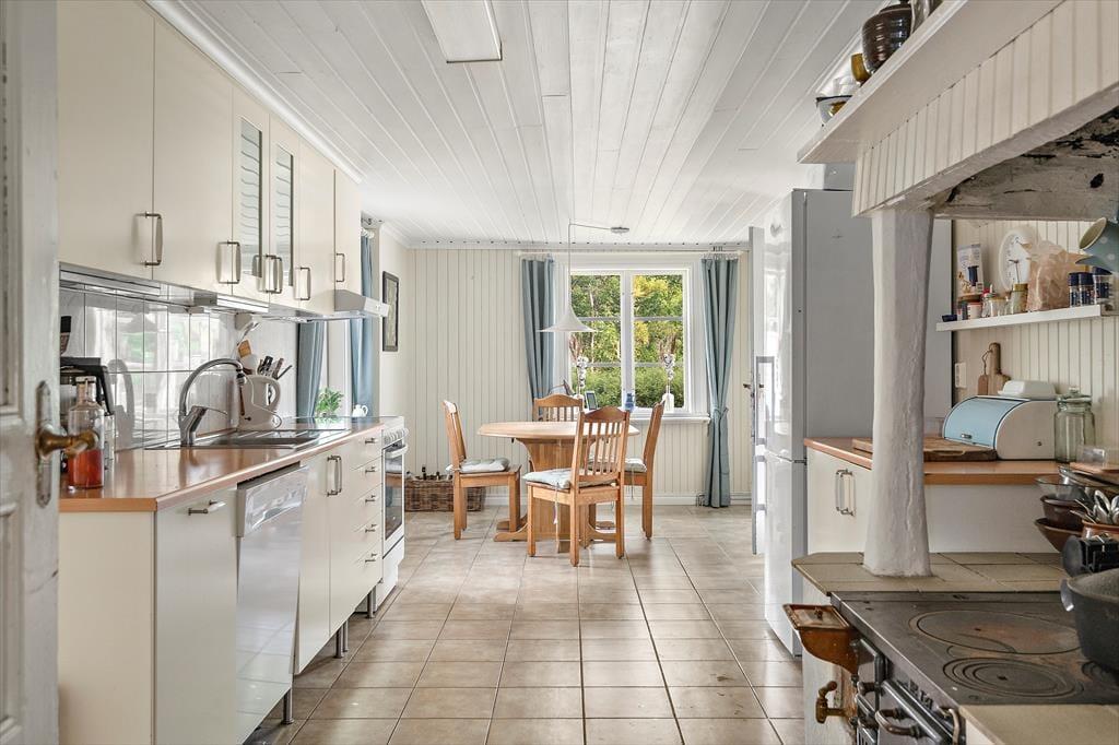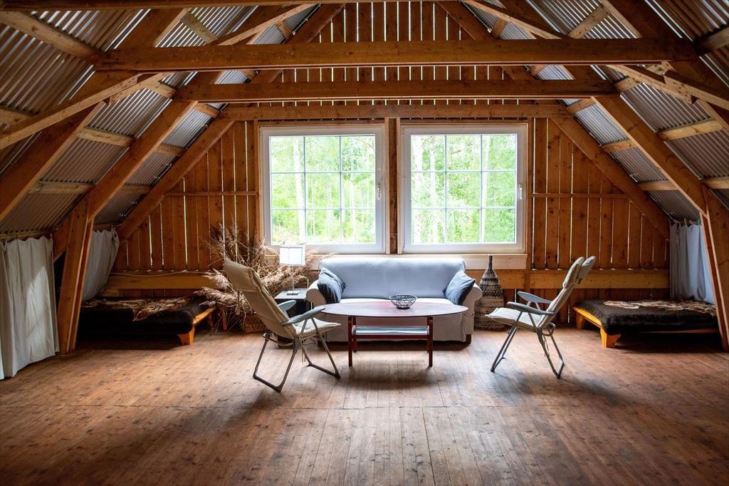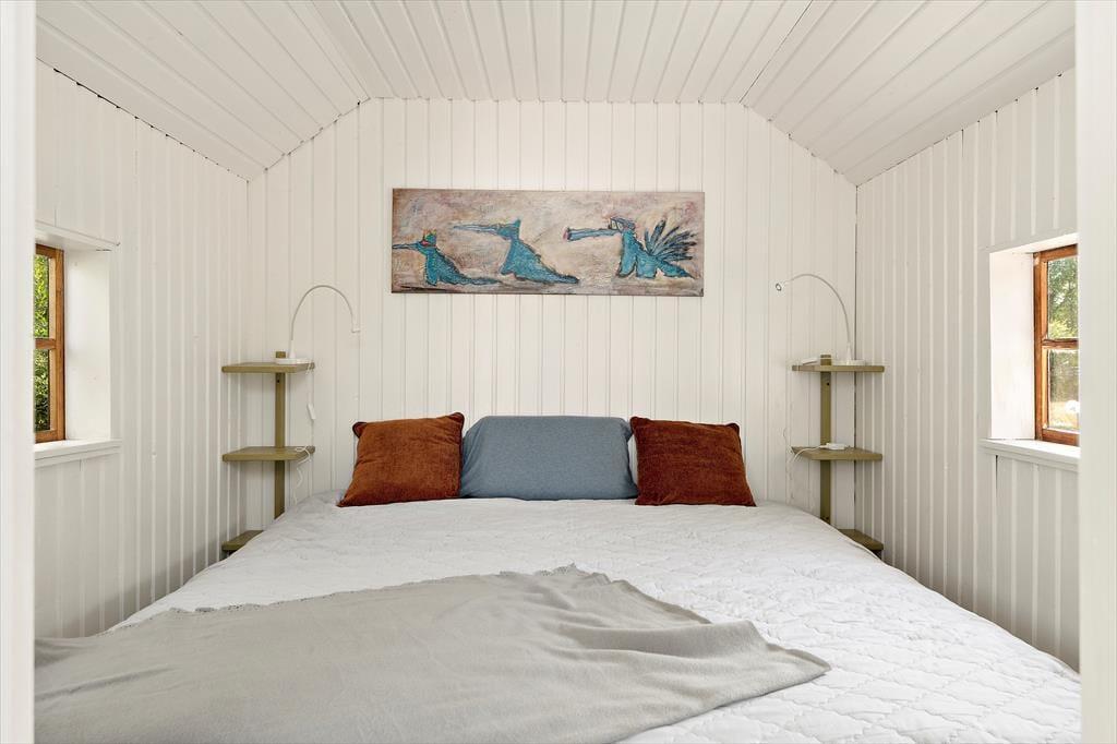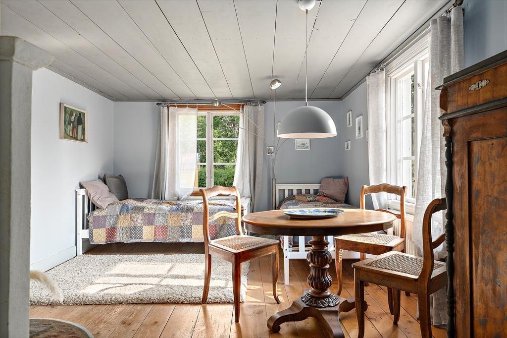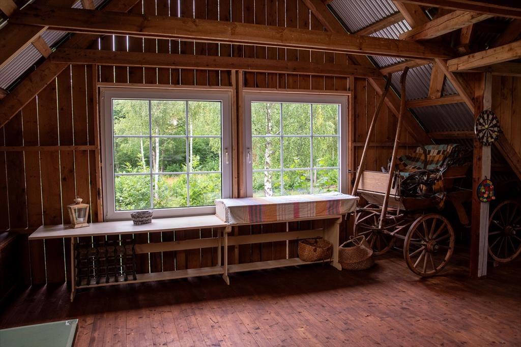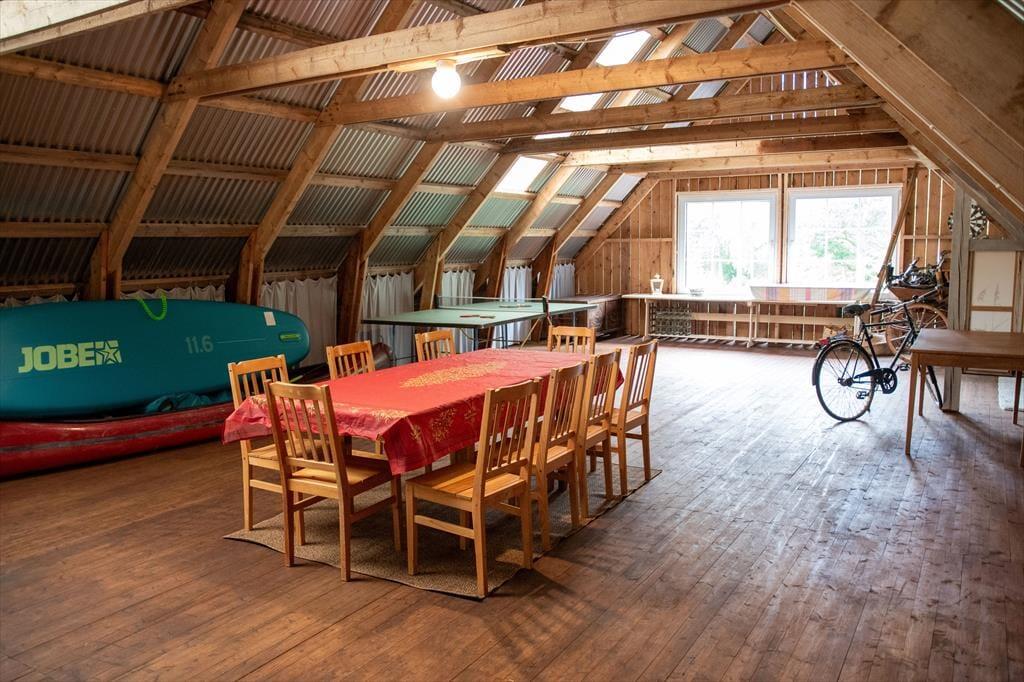 Et rummeligt feriehus på en meget stor grund, varmt og hyggeligt om vinteren. I den store lade kan man spille bordtennis, danse og feste. Børn kan slå sig løs på 200 m² i regnvejr, og der er 20 yogamåtter. Ved søen ligger en båd og i laden er en kano og et SUP / paddleboard som man må bruge. Det er ikke tilladt at ryge i huset. 2 Hunde må medbringes, så længe de bliver i stueetagen og ikke kommer op i senge, stole eller på sofaen. En tredje hund kan medbringes efter aftale. Sengelinned og håndklæder kan lejes for 80 DKK per person. Slutrengøring er obligatorisk og koster 864 DKK. Der opkræves et depositum, som tilbagebetales efter afregning med forbrugsomkostningerne og efter overdragelse af huset i upåklagelig stand. I perioden fra 1. maj til 31. august er strømforbruget inkluderet. Opladning af elbiler er muligt, men strømforbruget for denne bliver opkrævet over hele året.