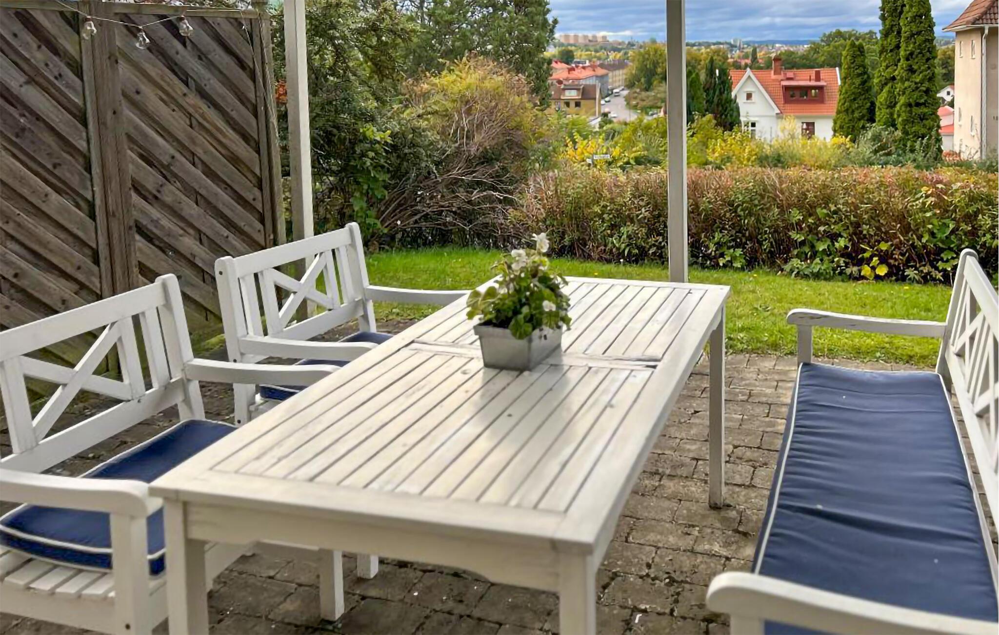 Med panoramaudsigt over Husqvarna og søen Vättern, ligger denne pragtfulde, rummelige villa, smagfuldt indrettet med høj standard. Den spændende planløsning tilbyder to store stuer, fire soveværelser og to badeværelser, hvoraf det ene har spabad. Terrassen og balkonen, sydvest vendte, giver begge en betagende udsigt over søen. Fine stier langs søen. Tæt på messecenter Elmia med en bred vifte af udstillinger. Ca. 40 km til Gränna-Vissingsö, High Chaparral ca. 60 km. Langrendspor med kunstsne og slalombakke med lift ca. 900 m fra huset.