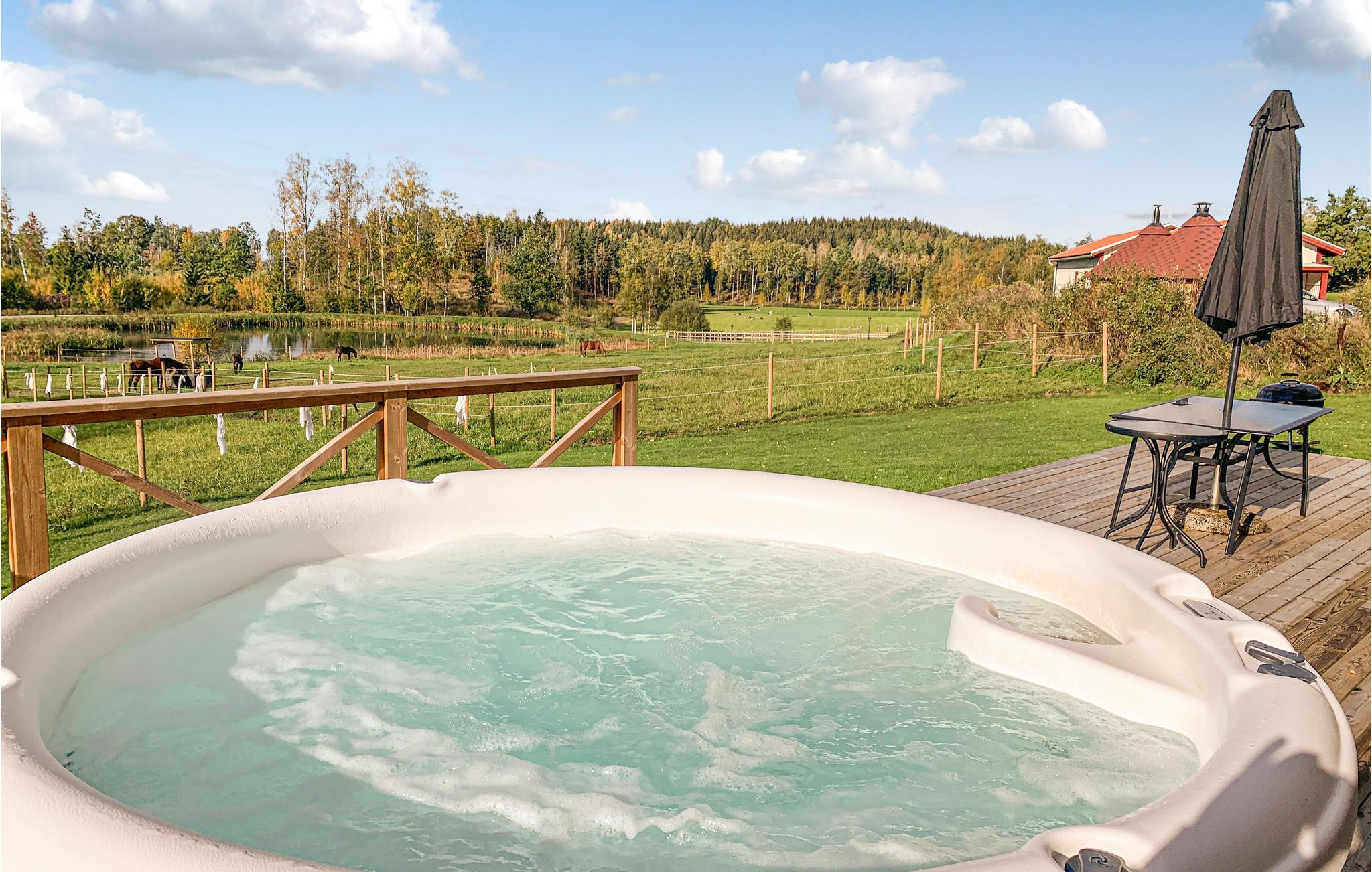 Dette charmerende feriehus lægger op til at blive hængende med sin afsides beliggenhed og en fantastisk udsigt til en idyllisk dam. Det rustikke interiør kombinerer åbne rum med højt til loftet, hvilket skaber en indbydende atmosfære. Nyd jeres kaffe fra espressomaskinen med udsigt gennem de store vinduer eller i den hyggelige grillhytte. Et perfekt sted at slukke og nyde naturen.
