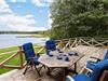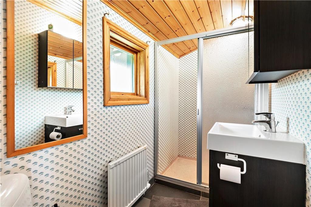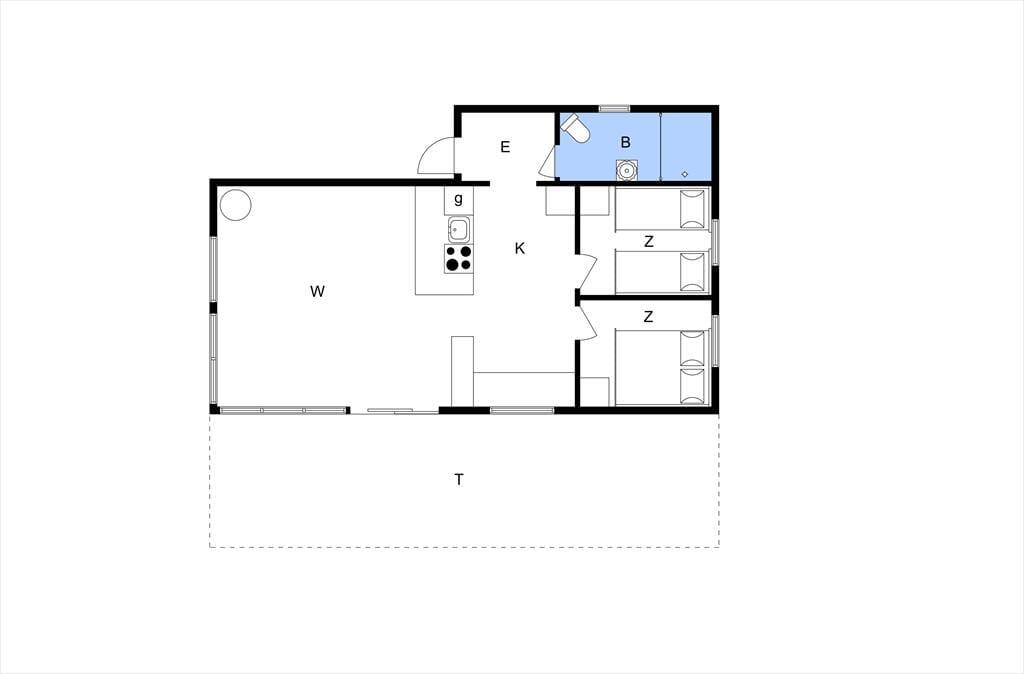 Det 55 m² store sommerhus imponerer med sin eksklusive beliggenhed direkte ved søen Unnen. Fra den vestvendte terrasse, er der en fantastisk udsigt over søen og landsbyen Unnaryd på den anden side. Sommerhuset byder på et opholdsrum med spisebord, hvorfra der er blik til vandet, sofa, tv og brændeovn. Midt i huset befinder køkkenet sig, som er udstyret med komfur med ovn, emhætte, mikroovn, opvaskemaskine og køleskab med fryseboks. Fra køkkenet har man adgang til husets to soveværelser. Det ene værelse har to enkeltsenge og det andet værelse har en dobbeltseng. Sommerhuset har koldt og varmt vand og kan opvarmes med el eller brændeovnen. Ved indgangen er der en knagerække, samt et badeværelse med bruser, toilet og håndvask. Gæster er velkommen til at benytte havemøblerne, grillen, robåden og kanoen. På campingpladsen Vallsnäs kan man leje ekstra robåde og kanoer på eget ansvar.