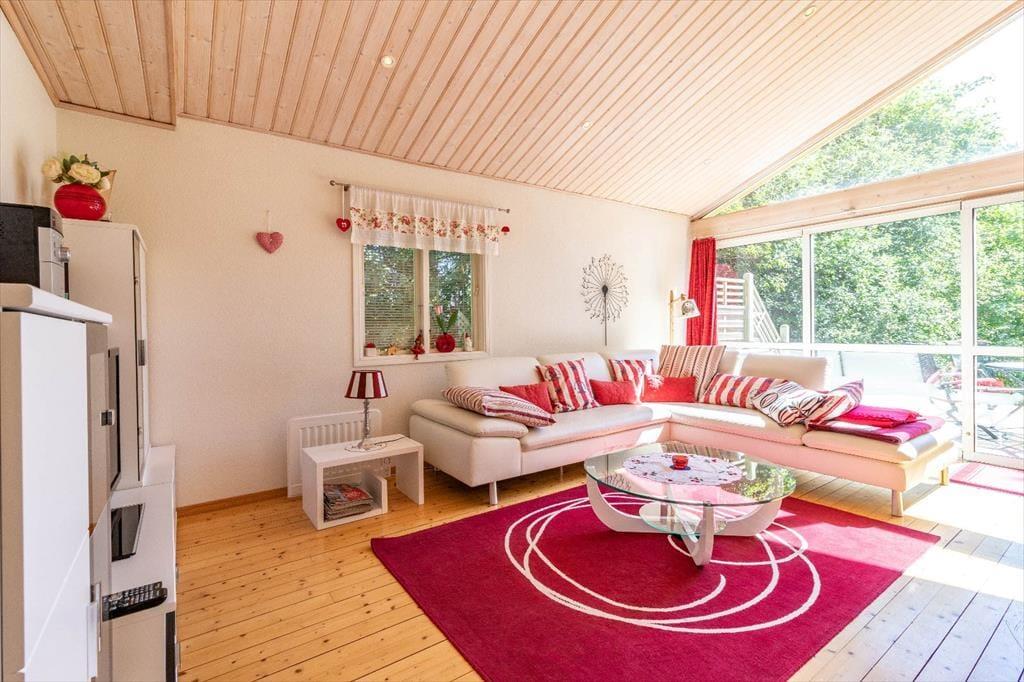 Sommerhus i Hylte, Sydsverige, med plads til 6 voksne. Der er en hyggelig indretning med bl.a. brændeovn, og du finder desuden vaskemaskine, opvaskemaskine og tørretumbler i boligen.