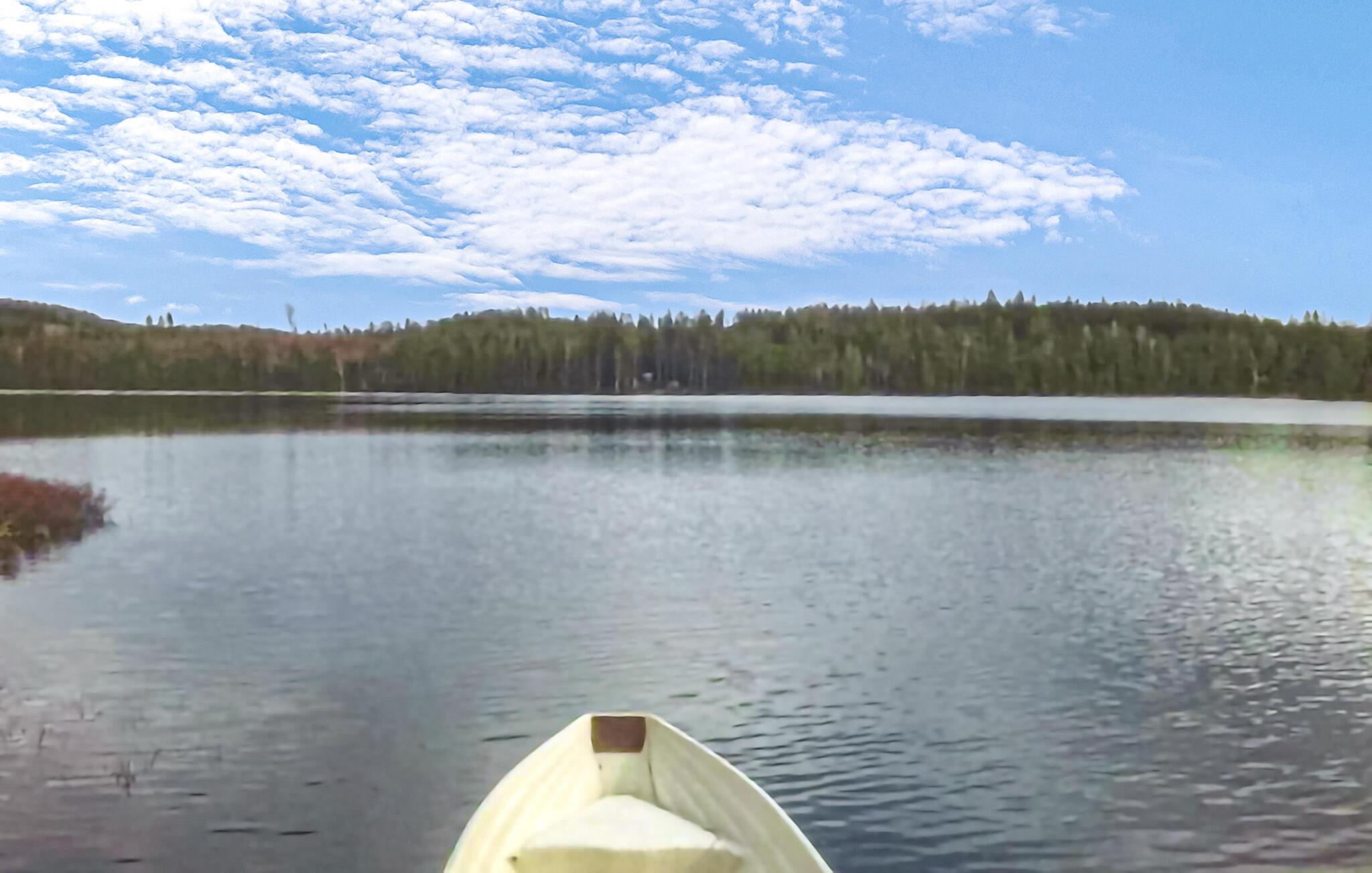 Udenfor er der en åben terrasse, hvor I kan nyde dagens første kop kaffe. En robåd er inkluderet i lejen, så I kan også opleve naturen fra vandsiden.