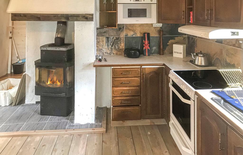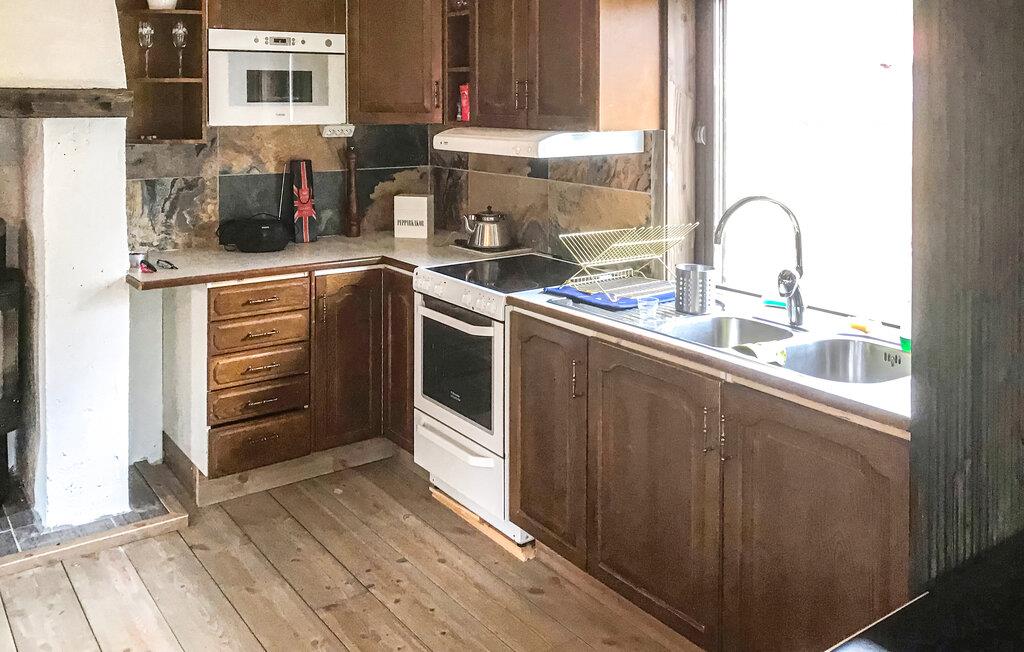 Husets boligareal fordeler sig over et opholdsområde med åbent køkken samt to soveværelser og et badeværelse. På kølige dage spreder brændeovnen varme og hygge!