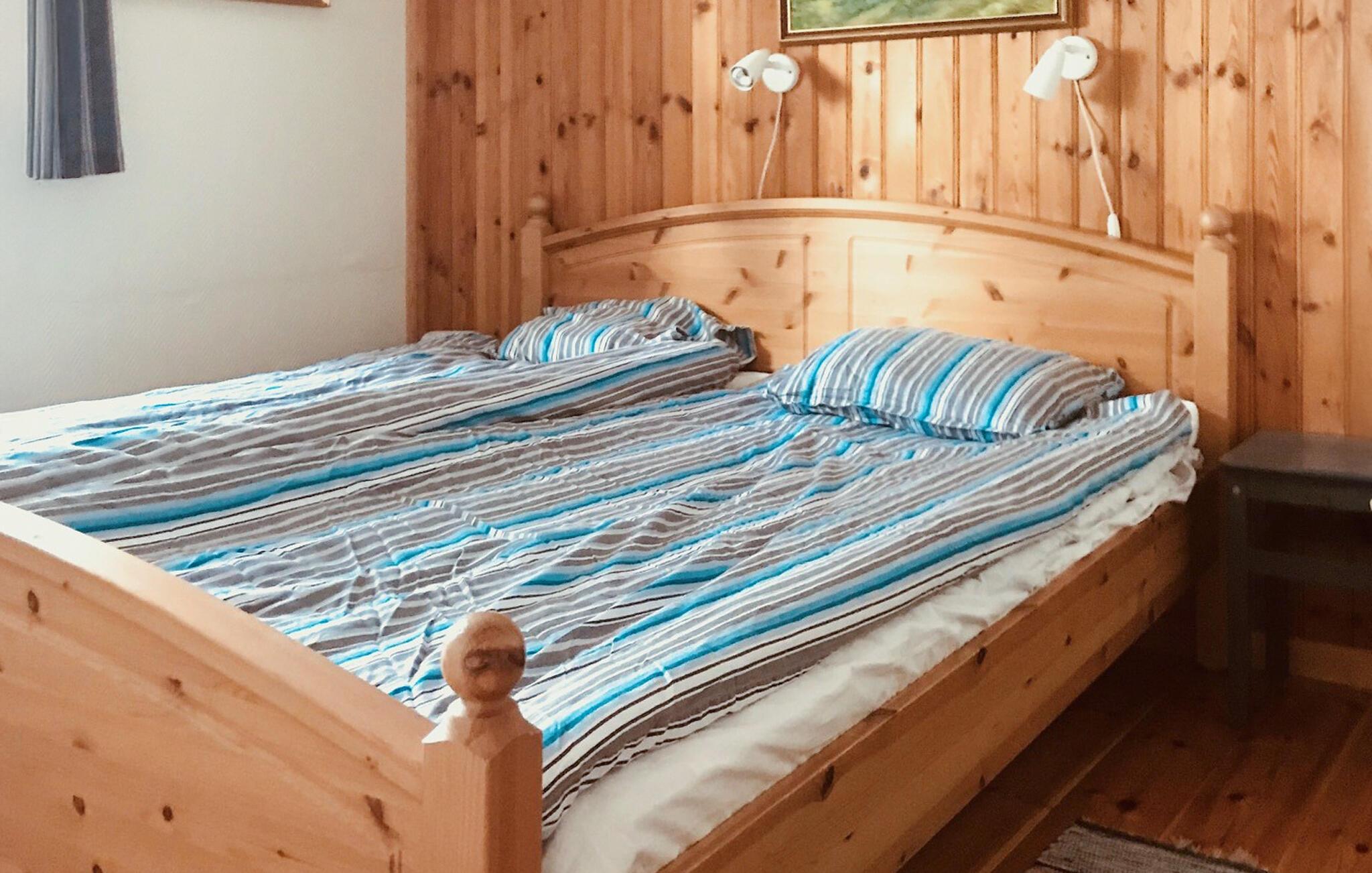 Nyd charmen ved denne bjælkehytte, som tilbyder jer et indbydende tilflugtssted under en afslappende, aktiv ferie. Kom ind og glæd jer til harmoniske dage i det træbeklædte interiør. Tilbered jeres måltider i det moderne køkken og sæt jer ved det komfortable spisebord. Tænd pejsen og smyg jer på de komfortable sofaer til en hyggelig spilleaften.