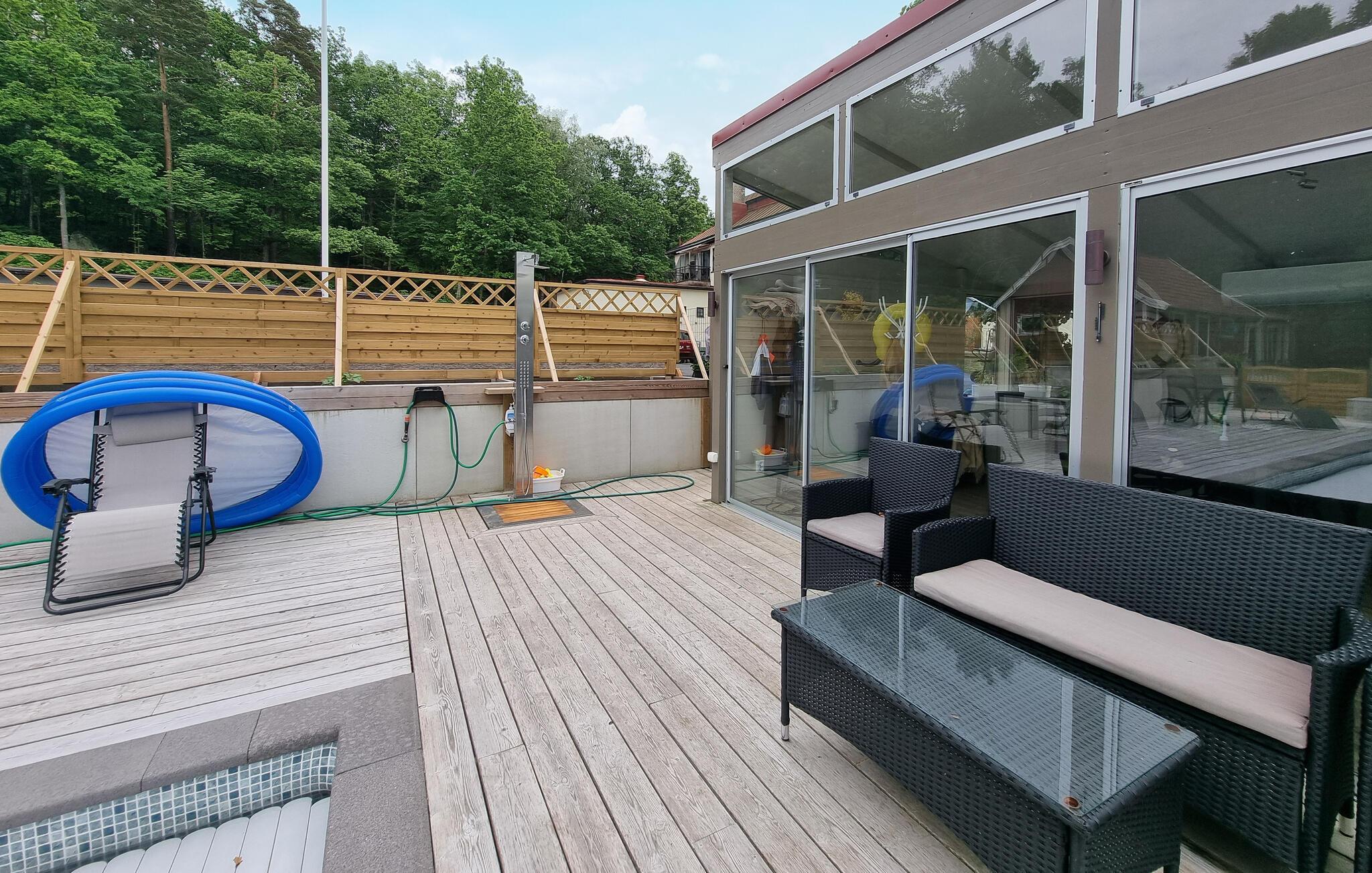 Den opvarmede pool, der er opvarmet til behagelige 28 grader fra midten af maj til midten af september, lægger op til afslappende timer i vandet. En privat anløbsbro og bådehus giver ekstra komfort og fritidssjov. Den store, parklignende grund er perfekt til boldspil og en hyggelig lille picnic.