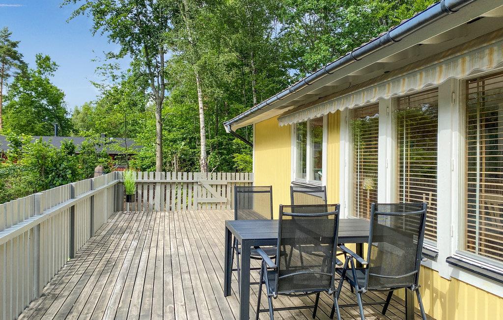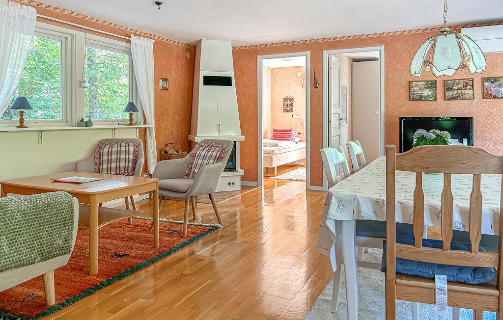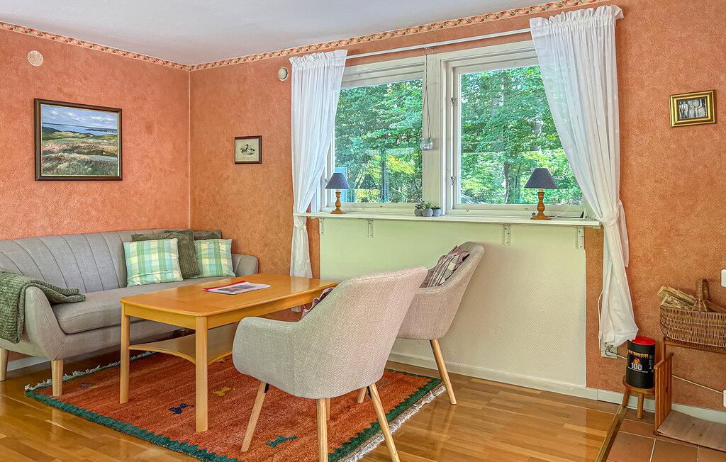 Hele familien vil føle sig hjemme i denne gule træhytte på øen Ivö. Hytten er rigtig hyggelig og får sin charme fra de varme farver, de blomstrede detaljer, den indbydende indretning og masser af lys. Det store spisebord er perfekt til en sjov aften med Monopol. Dette inkluderer selvfølgelig også den lækre jordbærkage, som I har lavet sammen med børnene. Efter at være gået i seng og boltret sig i haven kan mor og far nyde en romantisk aften i udestuen.