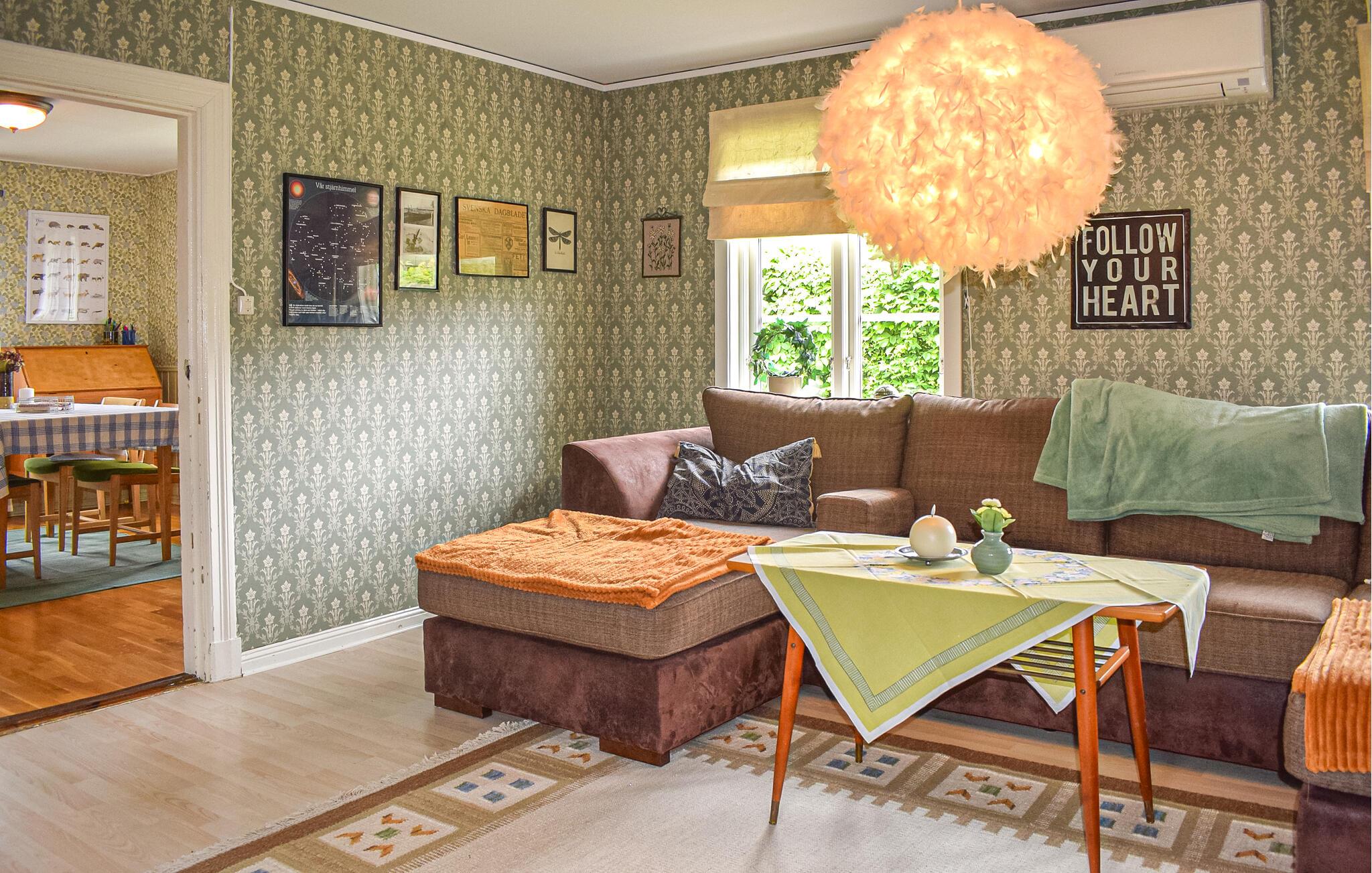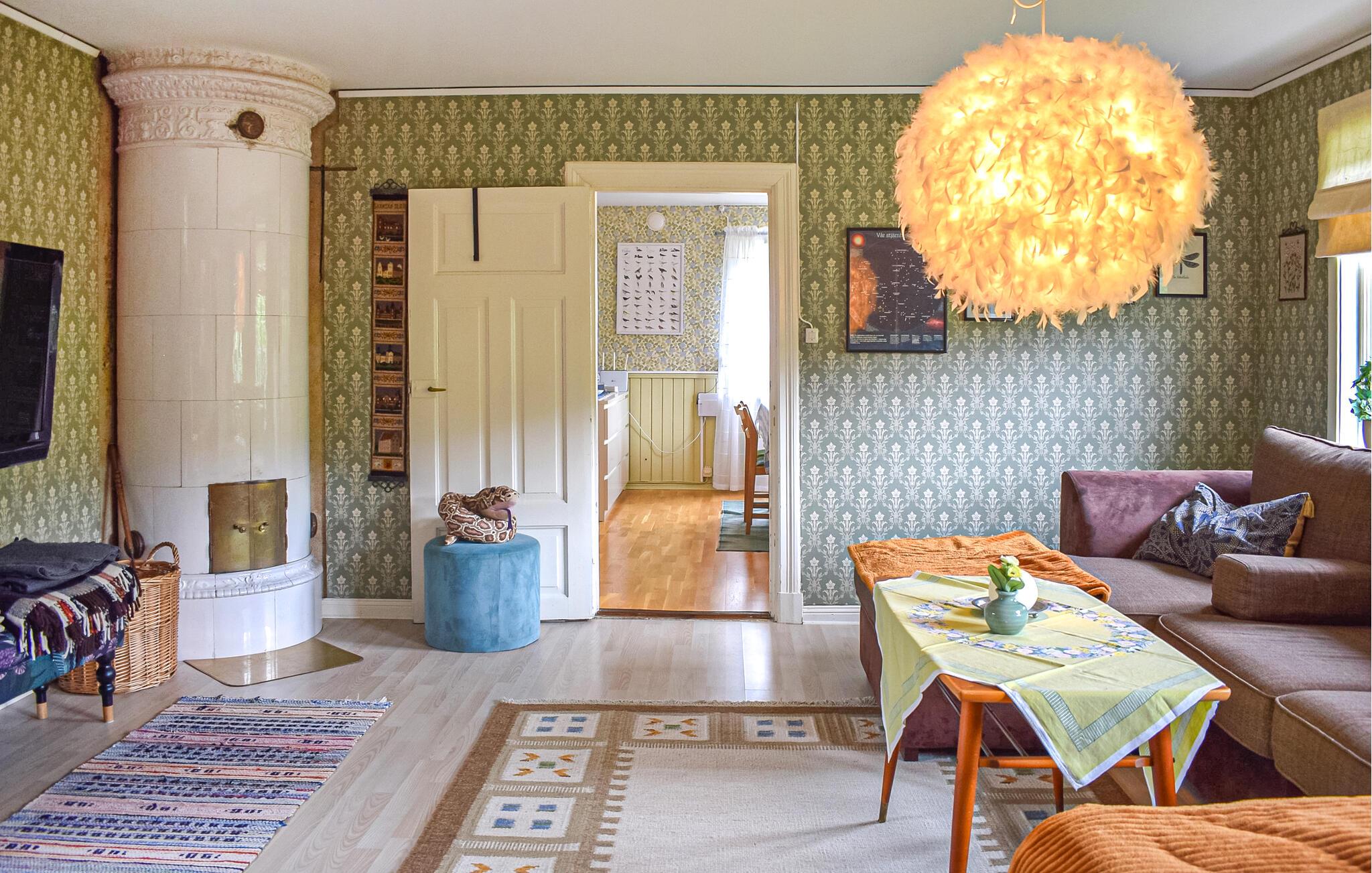Oplev en idyllisk ferie i dette fortryllende feriehus med have. Dette kærligt møblerede feriehus byder jer velkommen med et lyst og rummeligt interiør og en charmerende kombination af nostalgisk stil og moderne detaljer – det ideelle sted at undslippe hverdagens stress og jag. Her kan I trylle lækre retter frem lavet med friske svampe, slappe af i gyngestolen eller nyde den hyggelige atmosfære under harmoniske spilleaftener eller stille læsestunder. På solrige dage er jeres overdækkede terrasse et hyggeligt sted at nyde morgenmaden med udsigt over den velholdte have. Tænd op i grillen og reflekter over jeres oplevelser under åben himmel med et glas Ivögården-vin. Udforsk øens mange naturskønne vandrestier, saml svampe eller find fossiler. Prøv lykken med fiskeri i den store indsø Ivösjön, eller kombiner en gåtur gennem Naturum-museet nær Kristianstad med en slentretur gennem byen. Besøg Blekinge skærgård og Bäckaskog Slot, eller tilbring en dag med at svømme ved Åhus strand.