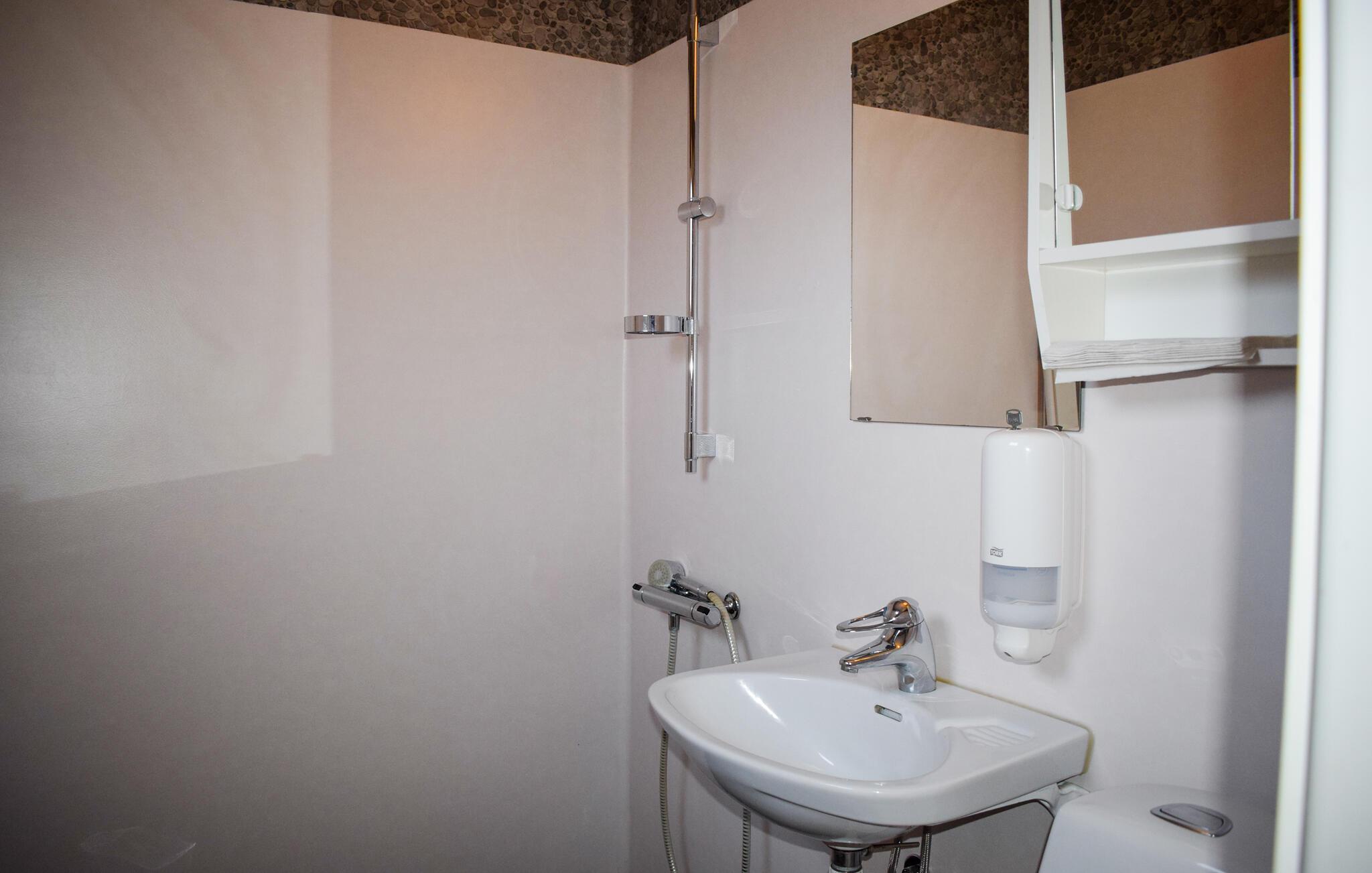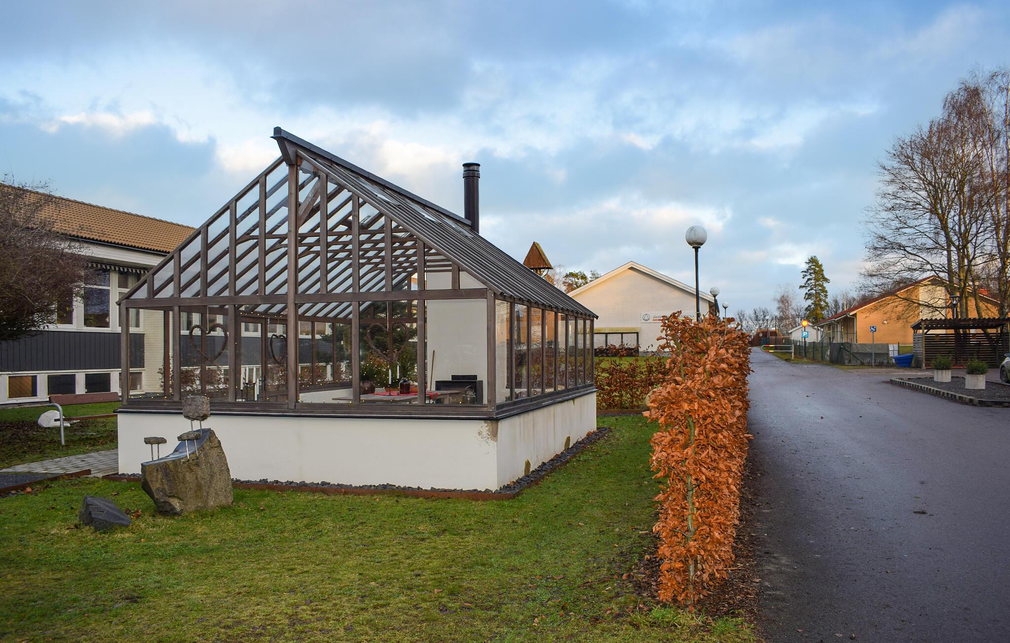 Oplev en afslappende ferie i dette praktiske feriehus i sørige omgivelser. Dette funktionelt indrettede hus tilbyder alt, hvad I behøver for en ubekymret ferie. Et praktisk køkken og et separat værelse med et stort spisebord skaber de perfekte rammer for hyggelige måltider. Slap af med en kop kaffe eller lav mad sammen, mens jeres yndlingsmusik spiller sagte i baggrunden. Gå udenfor med jeres morgenkaffe og nyd den fredelige atmosfære. Feriehuset ligger på den store grund tilhørende et voksenuddannelsescenter med en smuk have og et orangeri. Der er også masser af plads til, at børnene kan lege og løbe frit rundt på græsplænen. Udforsk de sørige omgivelser, hvor smukke badesteder og berømte fiskeområder som Hälasjömåla og Mörrumsån tilbyder ideelle betingelser for afslappende dage ved vandet. Besøg kulturelle højdepunkter som Sweden Rock, Nässelfrossa Festival, Hällevik Jazz Festival og Östersjöfestivalen. Tag på udflugter til Blekinge skærgård, til Kreativum i Karlshamn eller til Karlskrona med dets Marinmuseum. Bäckaskog Slot, Glasriket og Astrid Lindgrens Verden er også et besøg værd.