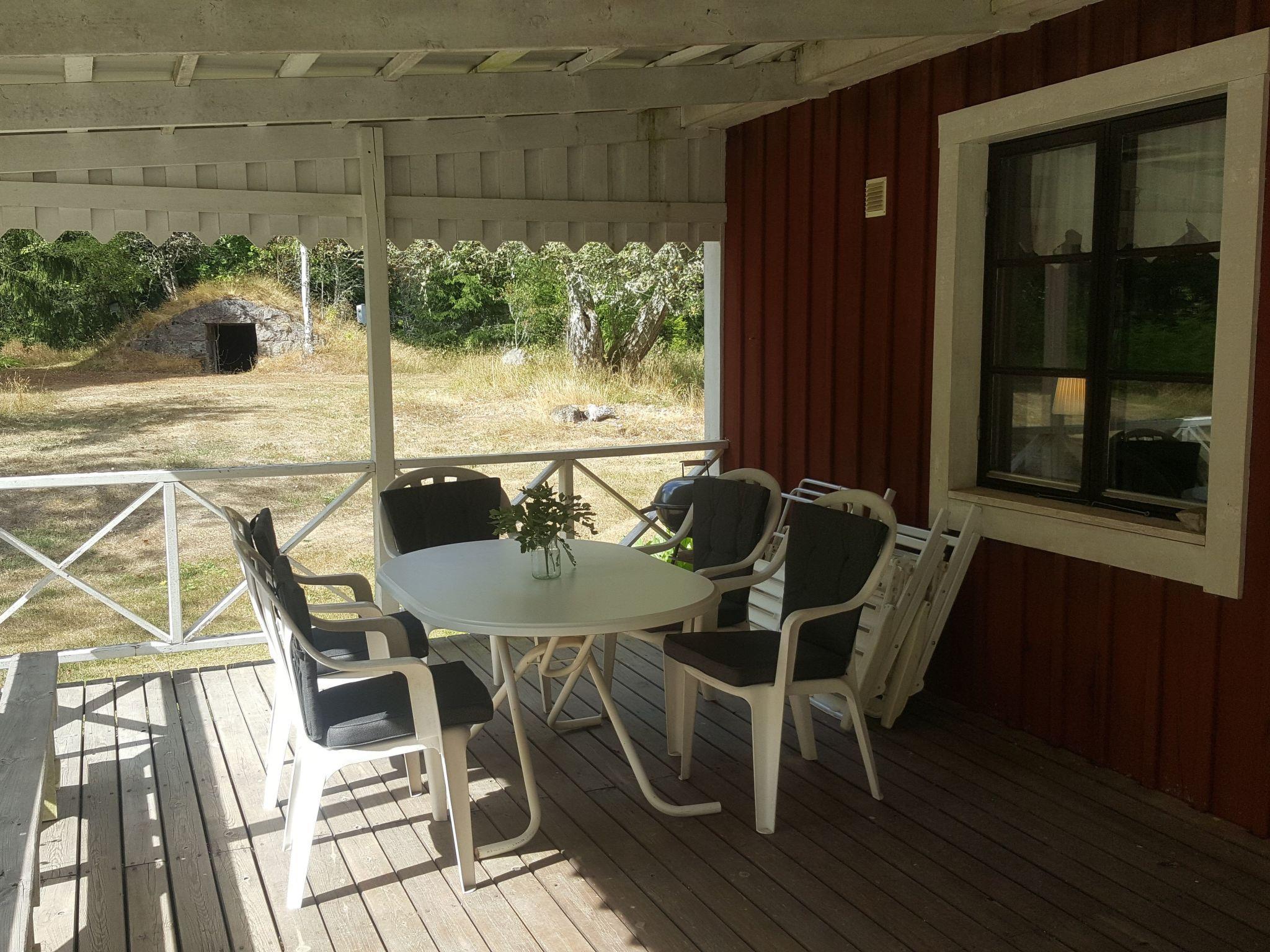 The house has two covered terraces with garden furniture and a small charcoal grill. The property is large and offers plenty of space for various summer activities.