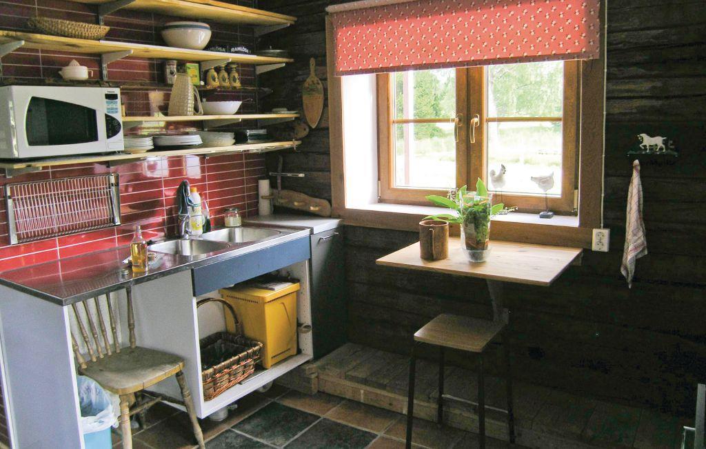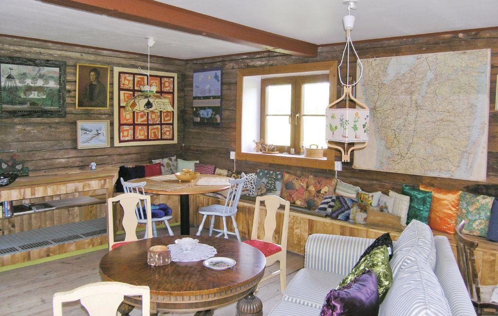 Huset er bygget i tømmer og er traditionelt og hyggeligt indrettet med en god blanding af nyt og traditionelt. Her er f.eks. flere forskellige borde og stole, så der altid er plads til forskellige sysler eller f.eks. svamperensning, hvis I har været på svampetur. Internet tilgængeligt mod betaling på stedet.