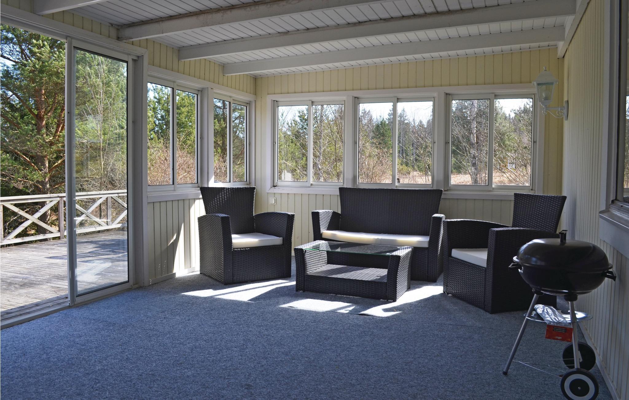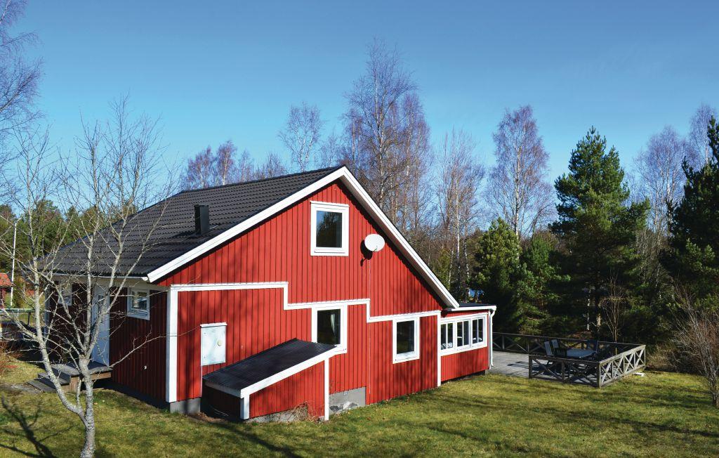 Dette hus ligger kun 150 m fra søen Möcklelns strand, hvor husets båd ligger. Herfra kan I tage på dagsture til Astrid Lindgrens Värld, Glasriket, Öland, Kalmar og Växjö. Huset ligger på en stor grund, har en glasoverdækket udestue der vender ud mod en stor terrasse. Her kan I nyde de solrige dage og de smukke solnedgange. Her er mange bær og svampe sidst på sommeren og om efteråret. Dette er et hus til at holde ferie i, året rundt.