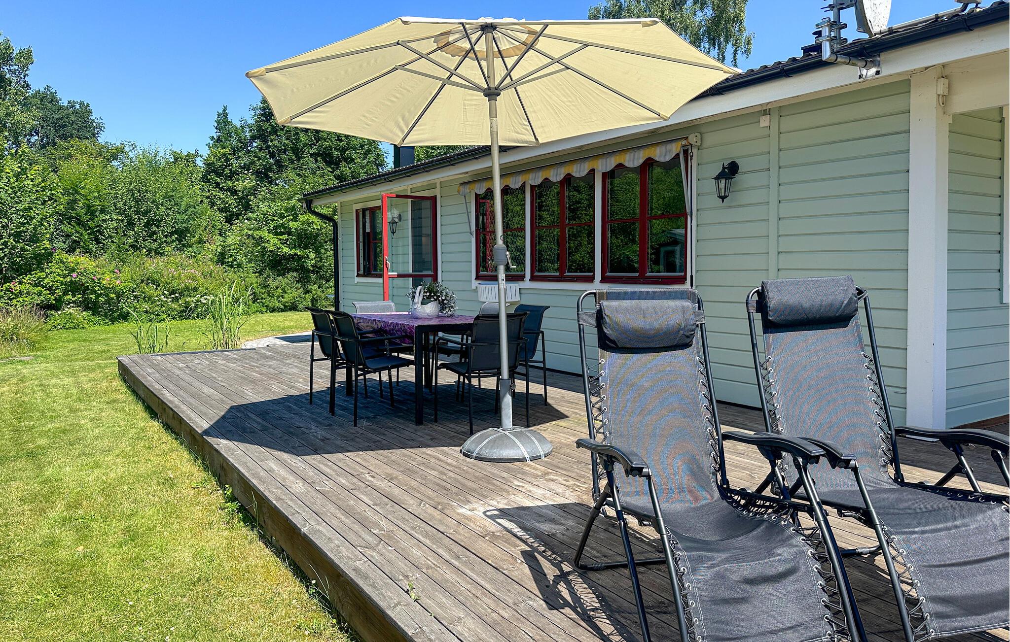 Dette feriehus byder jer velkommen til en afslappende ferie ved Vänern, Svespændendes største sø. Glæd jer til praktisk indretning og flere terrasseområder, hvor I kan nyde den friske luft og udsigten over søen. Begynd dagene roligt og nyd jeres første kop kaffe ved køkkenbordet. Efter en lækker morgenmad venter den svenske natur på at blive opdaget.