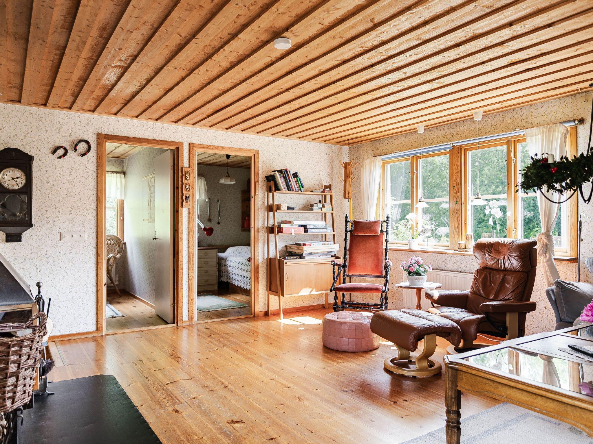 "Kvarnfallet 40", 5-room house 75 m2. Tasteful furnishings: living room with Scandinavian wood stove and TV. 1 room with 1 bed. 1 room with 1 bed. 1 room with 1 double bed. Kitchen (4 hot plates, oven, dishwasher, toaster, kettle, microwave, freezer, electric coffee machine). Exit to the terrace. Shower/WC. Heating. Upper floor: 1 room with 1 double bed. Wooden floors. Barbecue (portable). Please note: one double bedroom is outside the apartment. Non-smoking house.