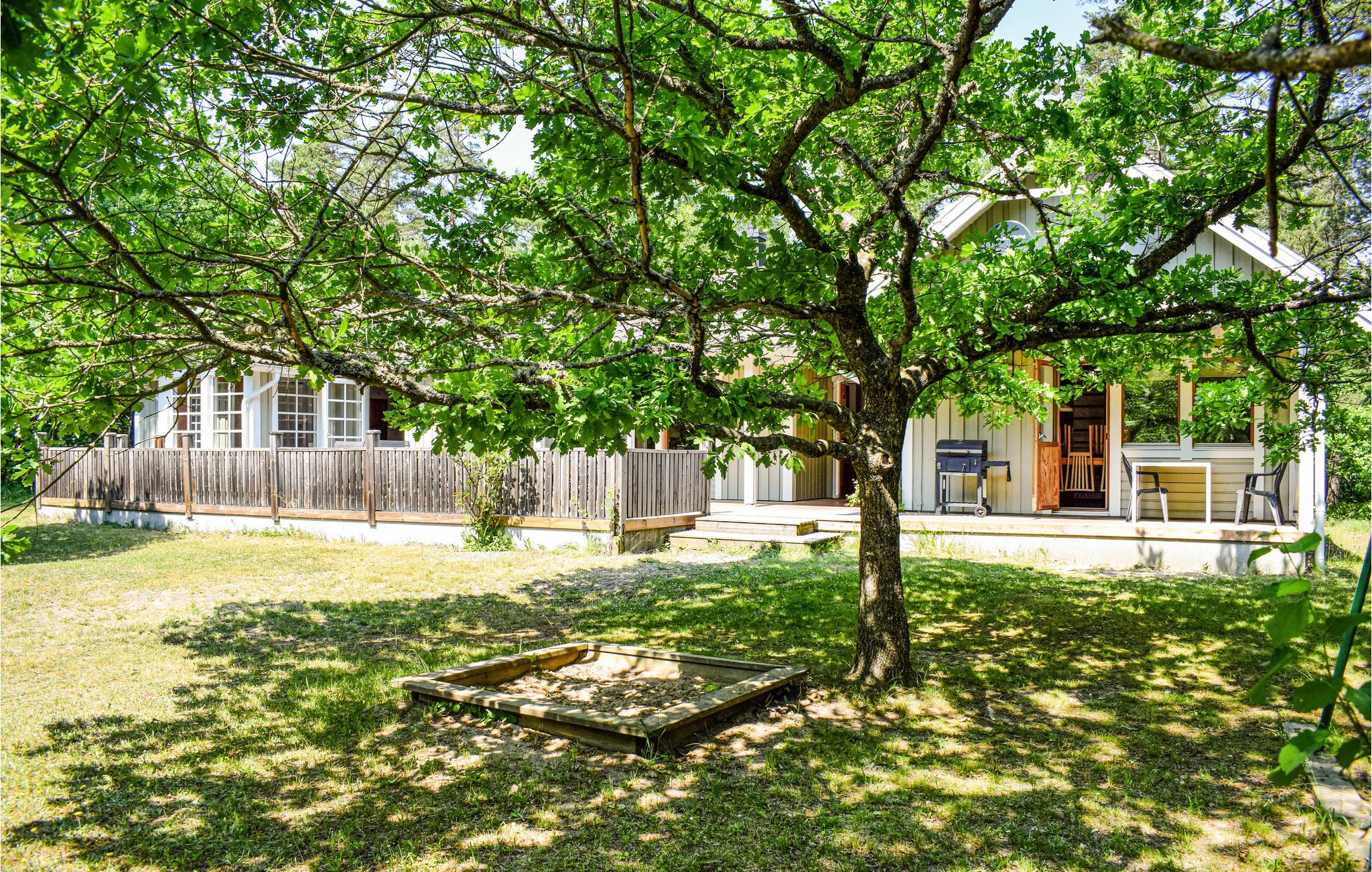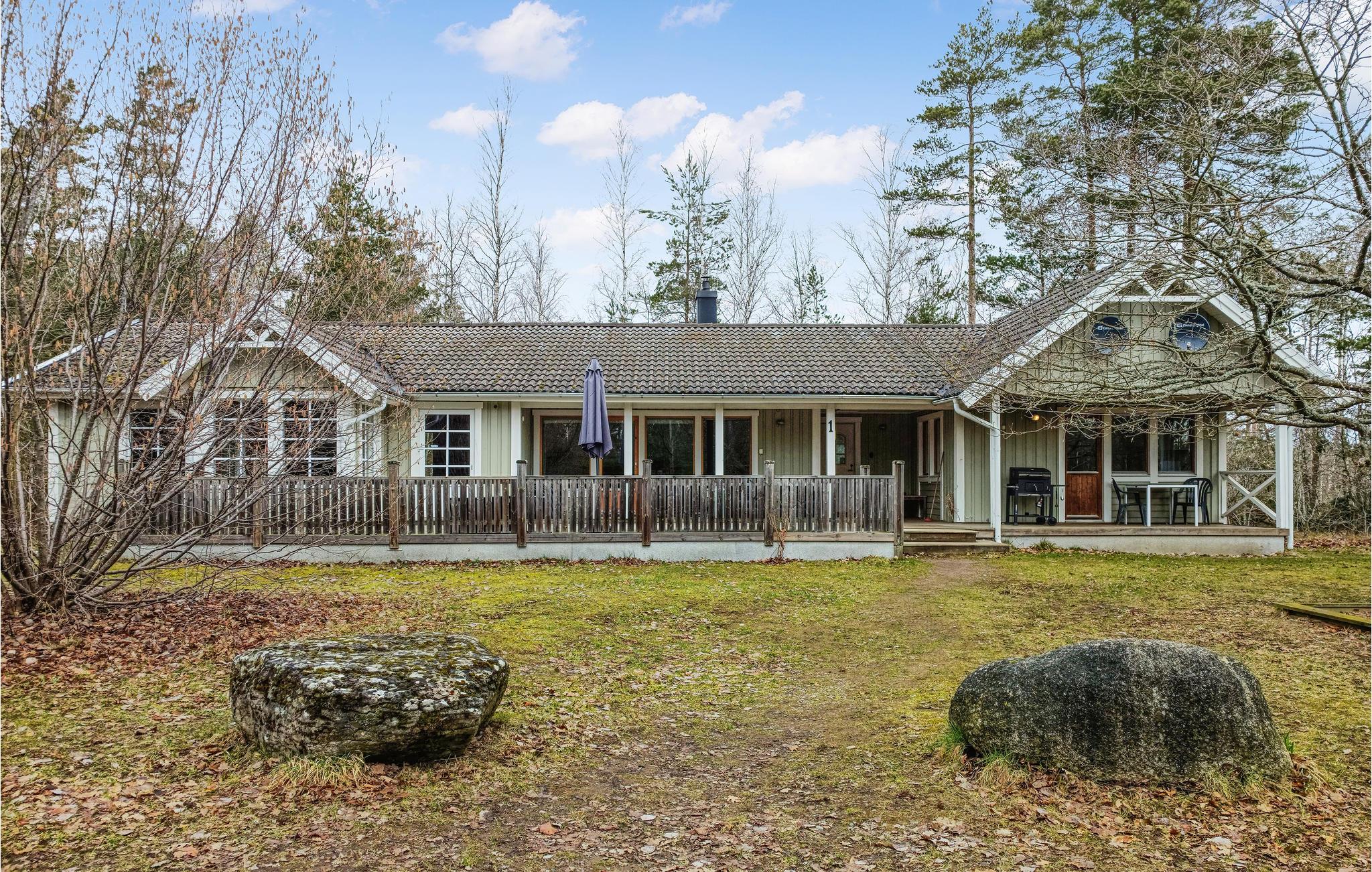 Det ligger på en skov/naturgrund blot 2,5 km fra Köpingsviks herlige sandstrand midt på Øland, hvor vandet er lavt langt ud og meget børnevenligt. Her er en stor delvist overdækket terrasse og en lille altan. I rummet med pool er der også en whirlpool og en sauna til velvære i løbet af ferien. Både entre og vådrum er med klinker og gulvvarme. Vandet koster 50 SEK/m³.