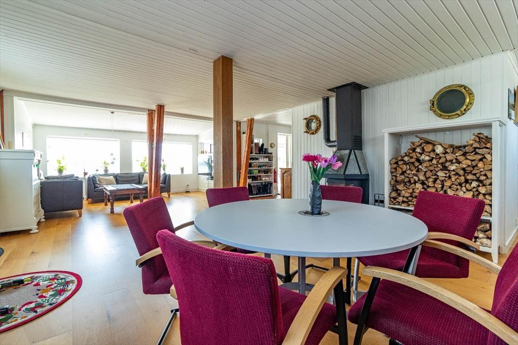 Ankomst og afrejse sker søndag. Husdyr er velkomne. Følgende ekstraydelser tilbydes: slutrengøring, leje af sengelinned og håndklæder (DKK 90 pr. sæt) samt brug af 11 kW-wallbox (DKK 380 pr. uge). En robåd og brænde til pejs og sauna er inkluderet i prisen. Der opkræves et depositum, som tilbagebetales, når huset er blevet inspiceret og accepteret uden reklamationer.