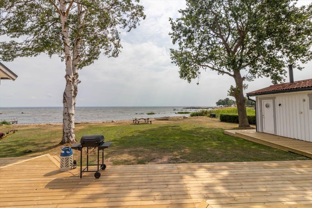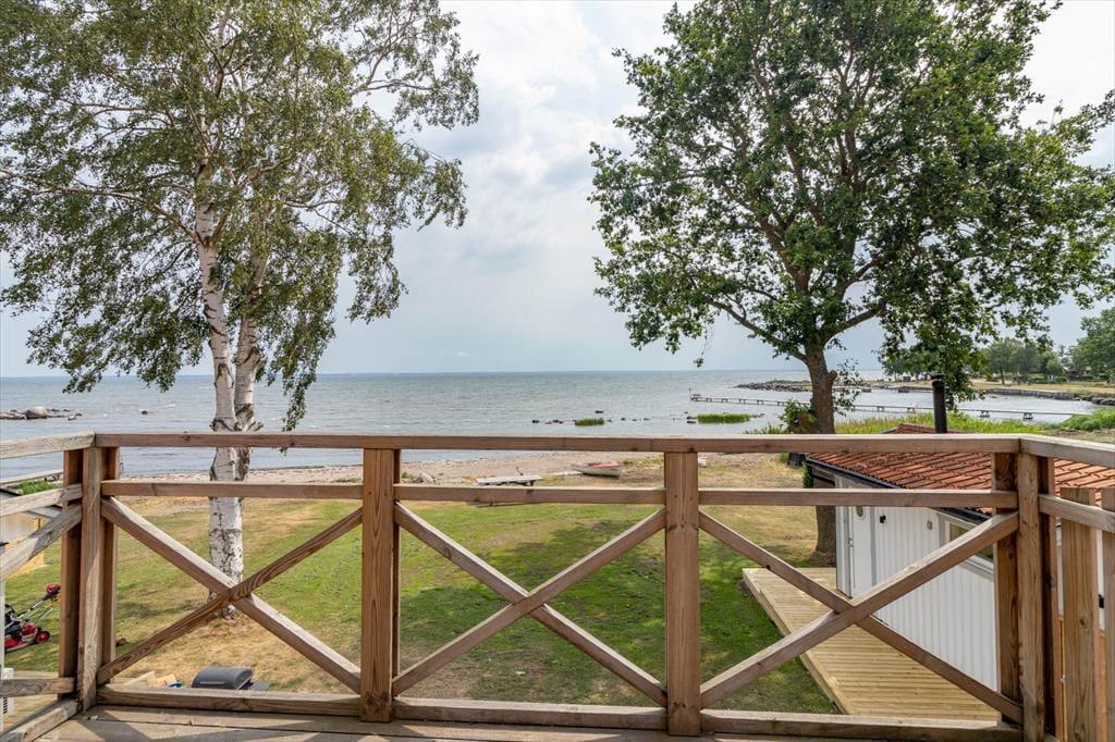 Dette charmerende feriehus ligger direkte ved havet i Smålands-regionen, nær den lille by Hagby, ca. 25 km syd for Kalmar. Den store grund på ca. 1.000 m² grænser direkte til vandet – kun 20 m fra havet. Lige ved siden af ligger en lille legeplads, ideel for familier med børn. Husets østlige orientering giver mulighed for smukke solopgange over havet og udsigt helt til øen Öland. Indkøb, restauranter og caféer findes i byen Vassmolösa, ca. 8 km væk. Til udflugter kan de historiske byer Kalmar (ca. 25 km) og Karlskrona (ca. 65 km) anbefales. Naturinteresserede kan opleve majestætiske elge tæt på i „Glasriket Älgpark“ (ca. 40 minutters kørsel). Også en dagstur til øen Öland, som nås på ca. 50 minutter, er værd at overveje.