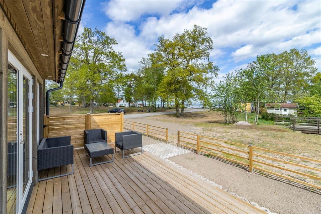 Feriehuset Sandvik ligger idyllisk i et feriehusområde syd for Kalmar i Småland. Kun ca. 120 m fra huset finder du en børnevenlig badeplads ved Østersøen, hvor du kan tilbringe afslappende timer ved vandet. Længs kysten finder du yderligere badepladser, som indbyder til udforskning. Kalmar nås på ca. 25 km, mens Karlskrona ligger ca. 65 km væk. Indkøb, restauranter og caféer findes i byen Vassmolösa, ca. 8 km fra huset. Øen Öland med sin unikke natur og de hundrede vindmøller er et besøg værd og kan nås på omkring 50 minutter. Natur- og dyreelskere kan besøge elgeparken „Glasriket Älgpark“ på ca. 40 minutters kørsel. På stedet kan du svømme, fiske eller blot nyde kystlandskabet.