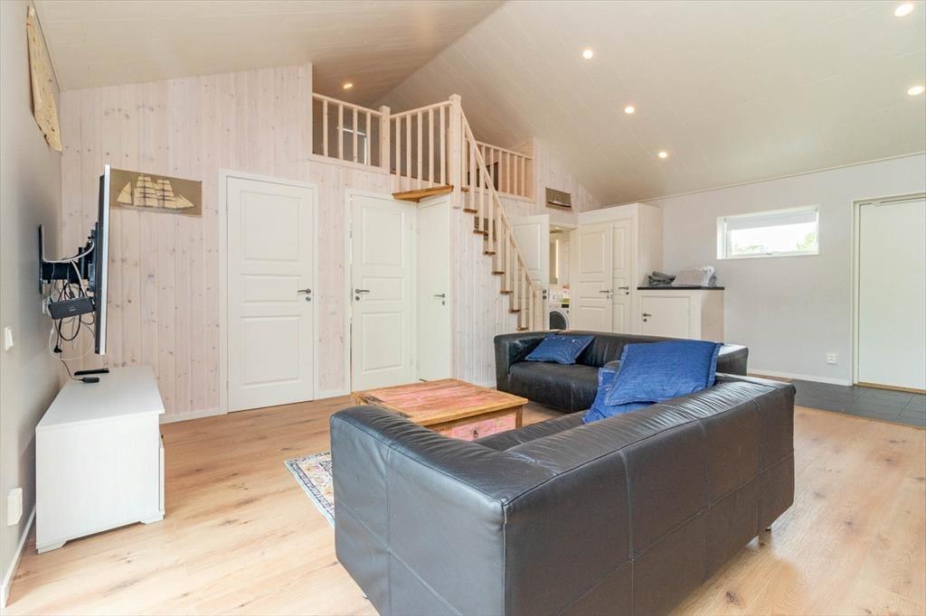 Huset har tre soveværelser: to med hver en enkeltseng og ét med dobbeltseng og Smart-TV. I sove-loftet findes yderligere to enkeltsenge. Badeværelset har toilet, bruser og vaskemaskine, og et separat gæstetoilet giver ekstra komfort. På terrassen kan du nyde frisk luft og udsigt med havemøbler og grill. Gulvvarme i hele huset, internetadgang, parkeringsplads og en 11 kW-wallbox til elbiler (kan benyttes mod € 50 pr. uge) fuldender faciliteterne.