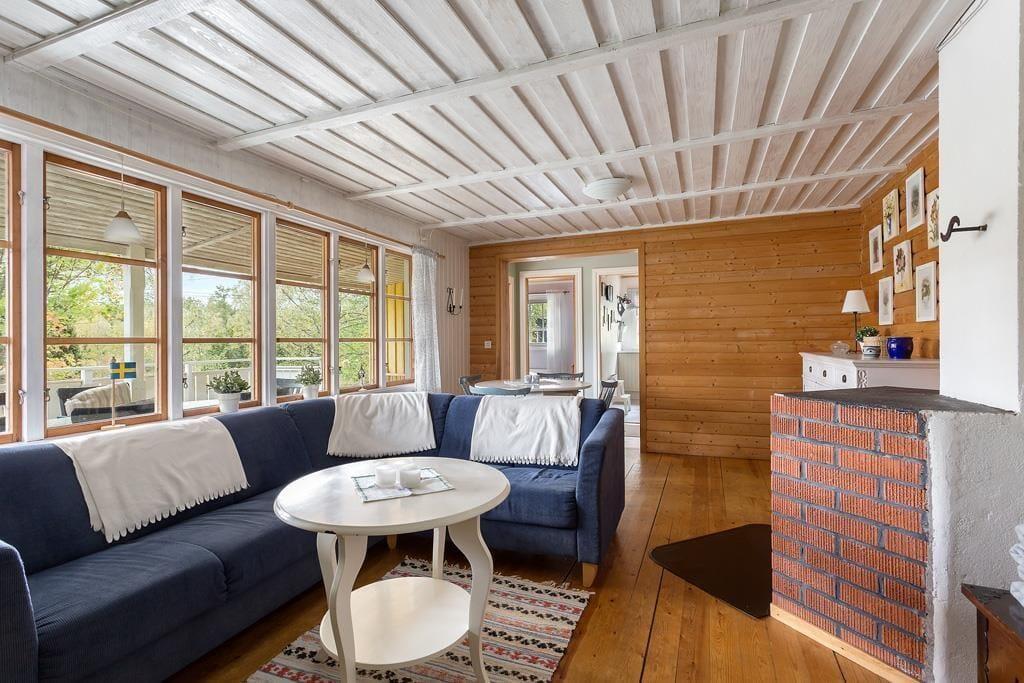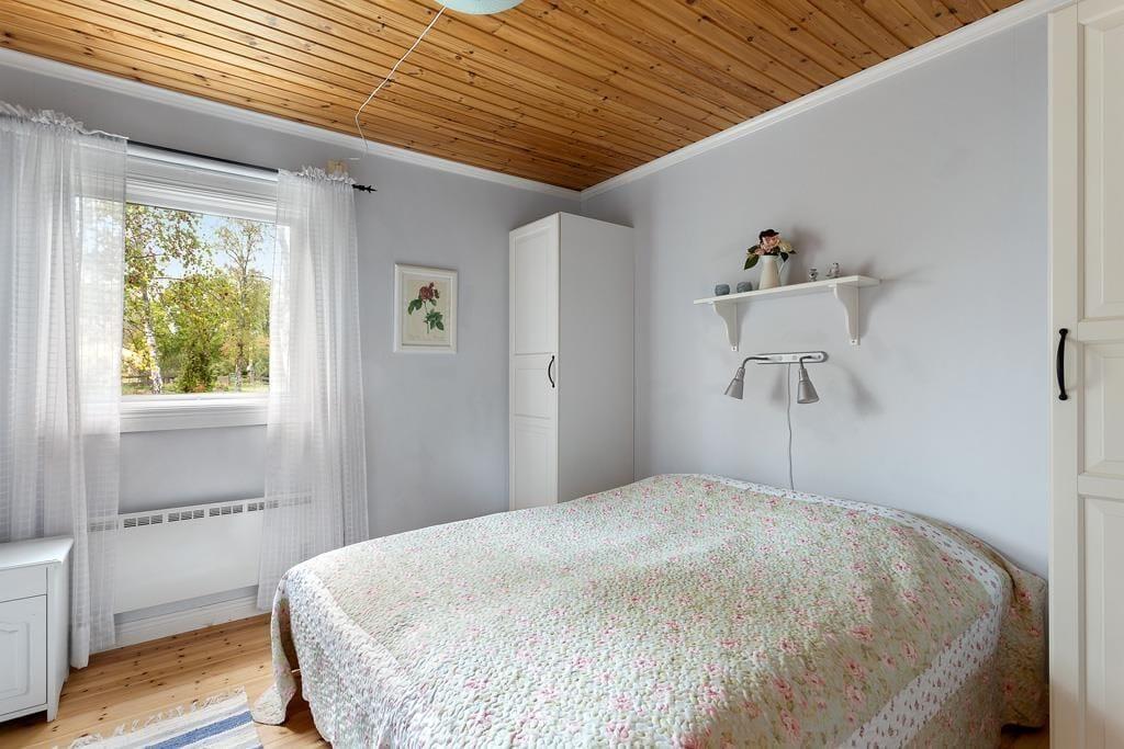 Det rummelige feriehus har et boligareal på ca 80 m² med plads til 7 personer. Husets stue er indrettet med åben pejs, spiseplads, sofahjørne og tv med svenske kanaler. Det moderne køkken er udstyret med køleskab med fryseboks, el-komfur med ovn, mikroovn, kaffemaskine og elkedel. Huset har tre soveværelser, det ene er indrettet med en dobbeltseng og en køjeseng, det andet har to enkeltsenge, mens det sidste soveværelse har en dobbeltseng. Badeværelset har toilet, håndvask og bruser. I et separat rum står en vaskemaskine. Huset har koldt og varmt vand og kan opvarmes med elvarme. Fra den store, delvist overdækkede terrasse, med havemøbler og grill, har man et skønt udsyn til Østersøen. Efter aftale kan der blive stillet en barnestol og en barneseng til rådighed.