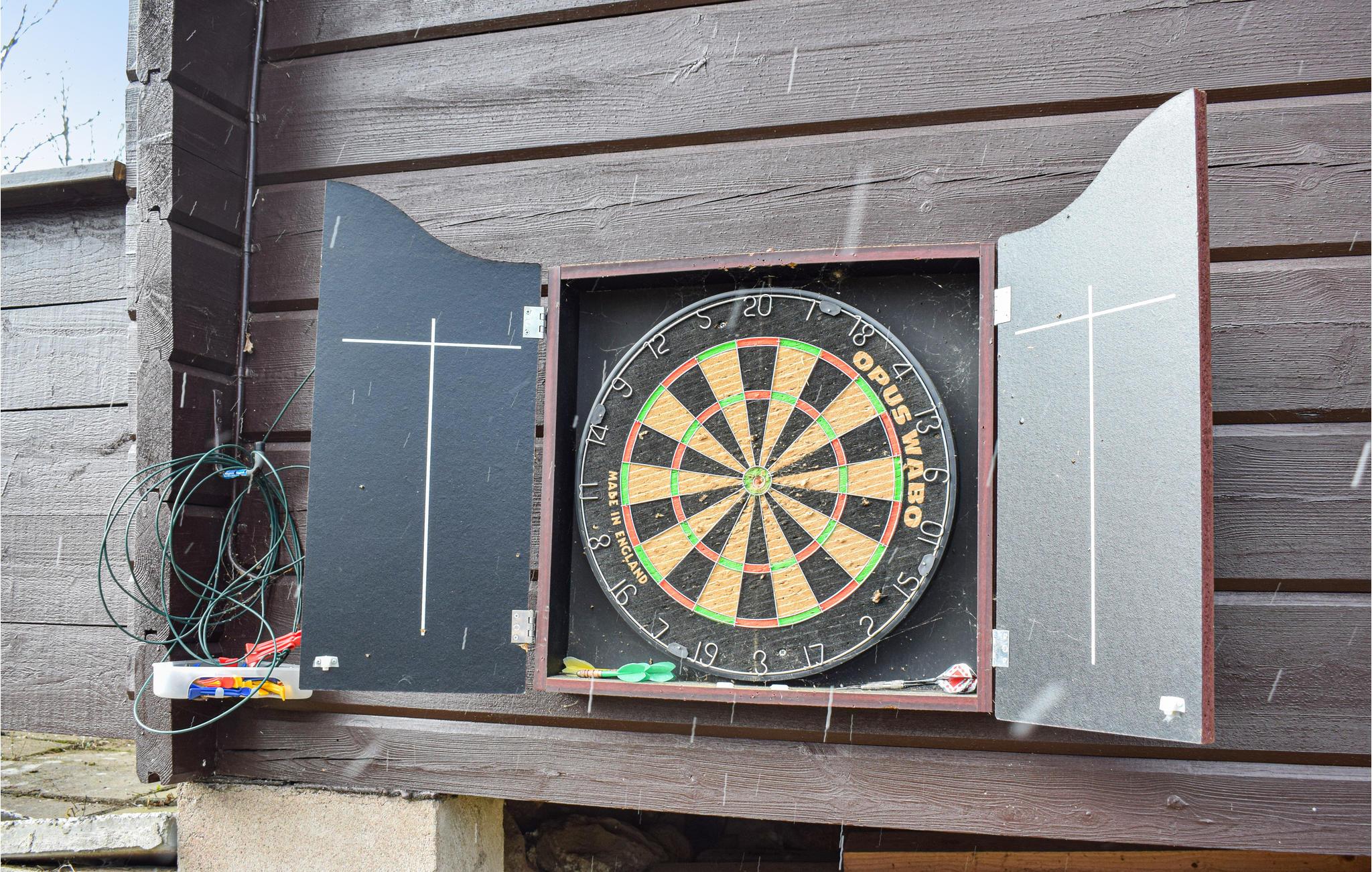 Brug udendørsområdet til afslappende timer i naturen. Den overdækkede veranda lægger op til at nyde jeres måltider udenfor eller blot opleve den friske luft og udsigten til det grønne. I kan også tilbringe sjove timer udendørs og spille dart.