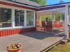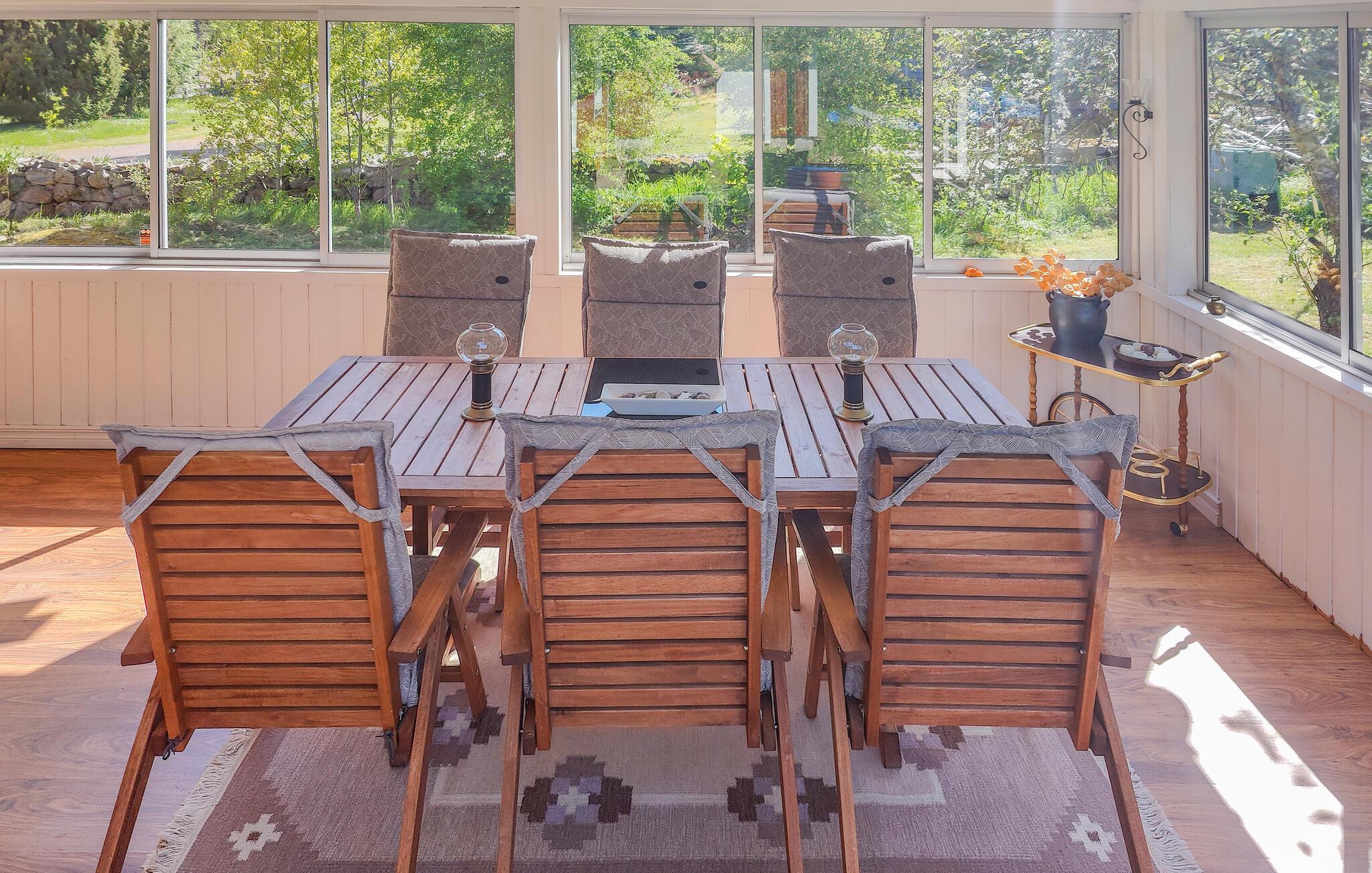 Dette charmerende feriehus er kun nogle få skridt fra havet. Tilbring afslappende dage på terrassen eller i den solspændende udestue, mens I fuldt ud nyder udsigten over Østersøen. I selve huset finder I en venlig indretning med et rustikt spisebord og et hyggeligt sofahjørne med store vinduespartier. Nyd den fantastiske udsigt over det grønne her. Brug det veludstyrede køkken til at tilberede jeres måltider.