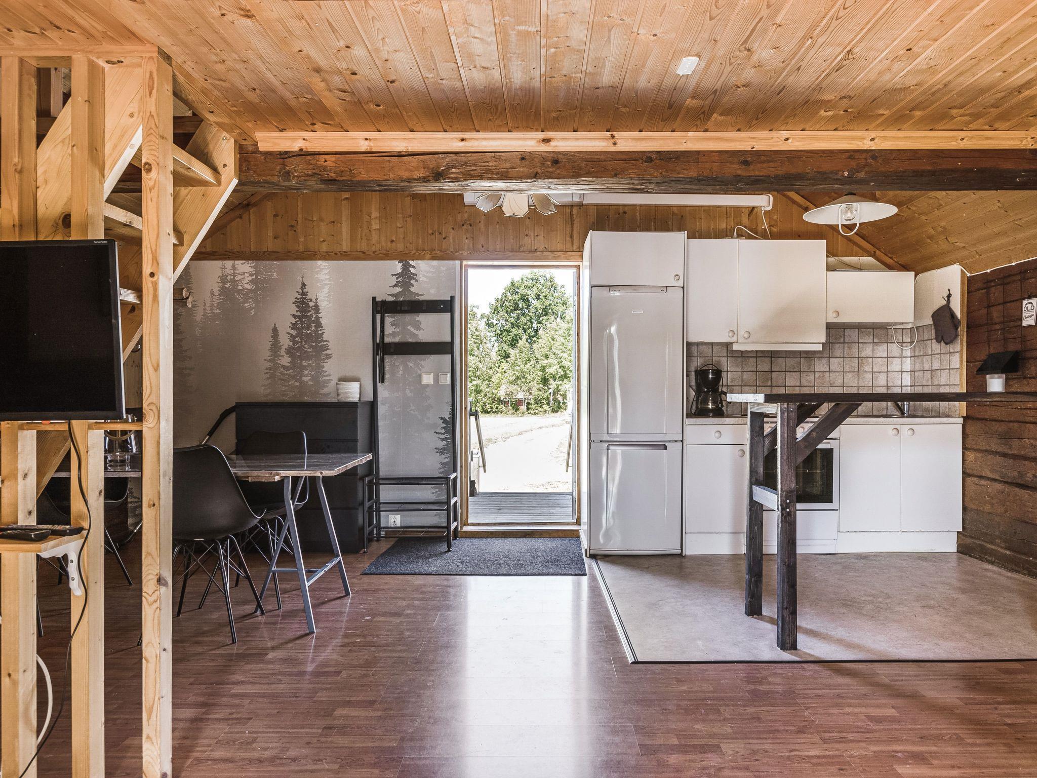 "Skärvudde Torpet", 2-room house 50 m2 on 2 levels. Practical furnishings: living/sleeping room with 1 double sofabed, Scandinavian wood stove, dining table and satellite TV. Exit to the veranda. Open kitchen (oven, 4 ceramic glass hob hotplates, toaster, kettle, microwave, freezer, electric coffee machine). Shower/WC. Electric heating. Upper floor: (steep stair) open living/sleeping room with sloping ceilings with 2 beds. Wooden floors. Terrace. Terrace furniture, barbecue (portable). Facilities: Internet (WiFi, extra). Please note: smoke alarm, fire extinguisher.