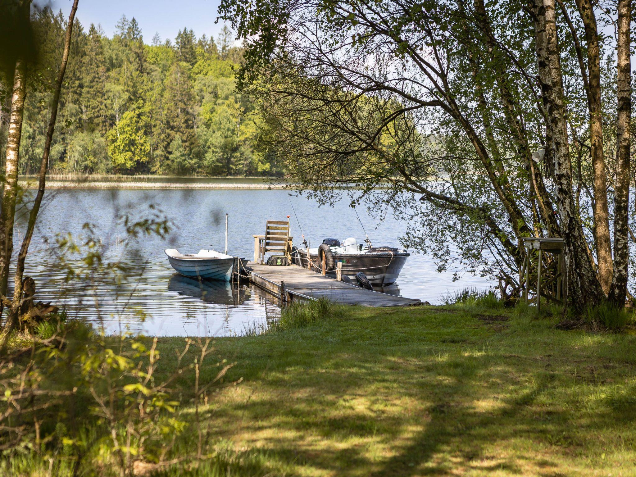 Cosy fisherman's house "Dammeberg", surrounded by trees and meadows. Property composed of main house and outbuilding 3.5 km from the centre of Karl Gustav, 16 km from the centre of Rolfstorp, 30 km from the centre of Varberg, on a slope, 30 km from the sea, 100 m from the lake, in the woods. For shared use: natural state property 55'000 m2 with trees. Children's playground, bathing jetty. Private: natural state property 10'000 m2 with meadow. In the complex: lounge with TV, sauna (extra). Massage (extra). Washing machine, tumble dryer (for shared use, extra), bicycle rental. Available: canoe (extra). Rowing boat with motor. 50 m long steep motor access to the house. Parking (for 2 cars) on the premises. Shop 10 km, supermarket 30 km, bus stop 950 m, railway station "Varberg" 30 km, ferry "Helsingborg" 170 km, sandy beach 100 m, indoor swimming pool 22 km. Golf course (18 hole) 17 km, fishing possibilities 100 m. Please note: childminding (extra). The owner lives on the same property.
