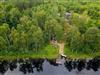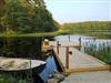 Ved søen er der en bådbro, en robåd, en bålplads og en lille træhytte.